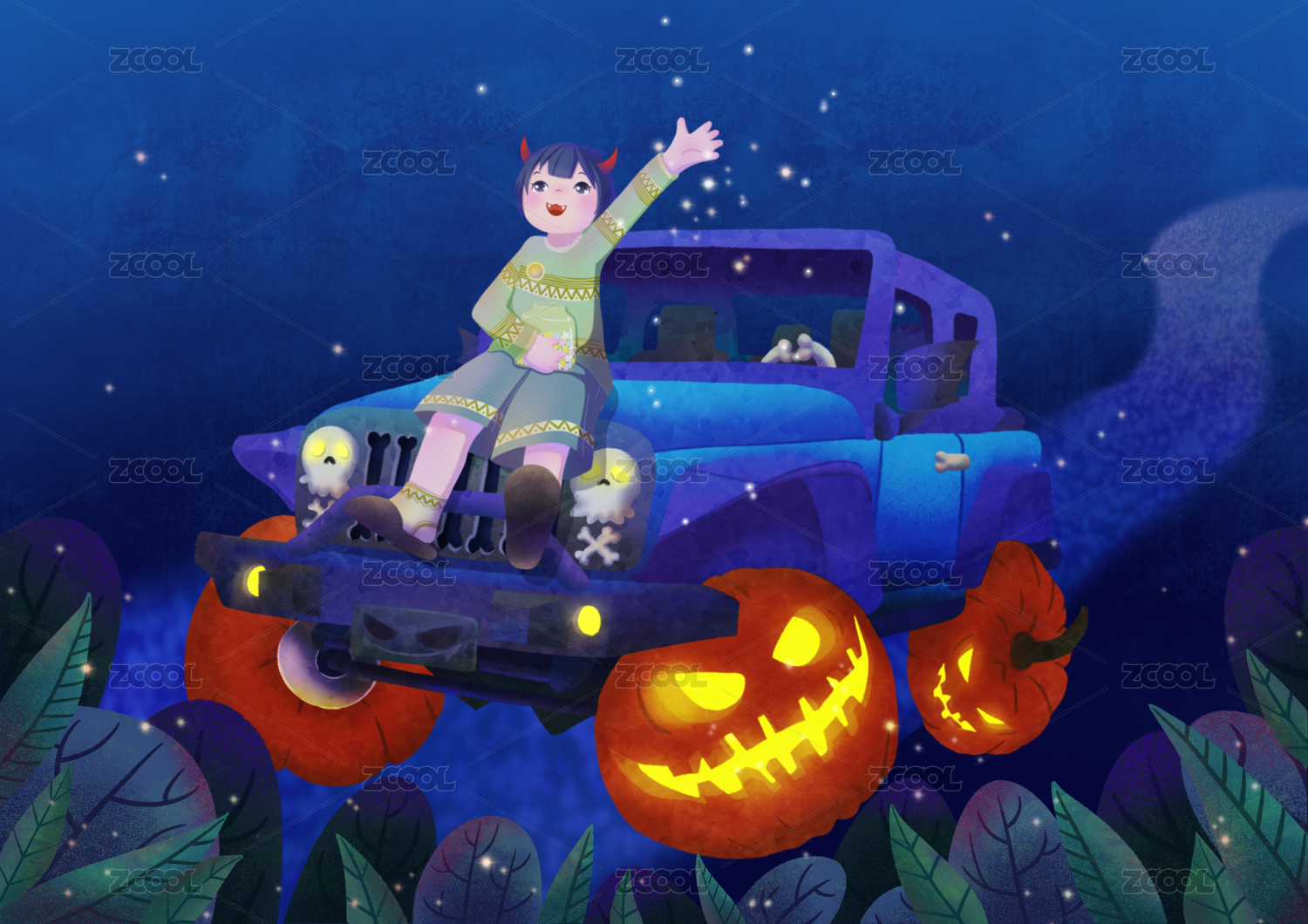 萬圣節(jié)篝火晚會插畫