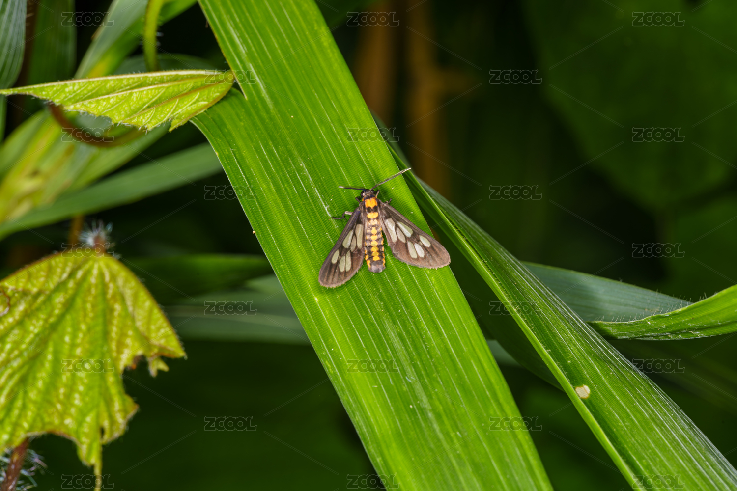 綠葉上的斑點飛蛾