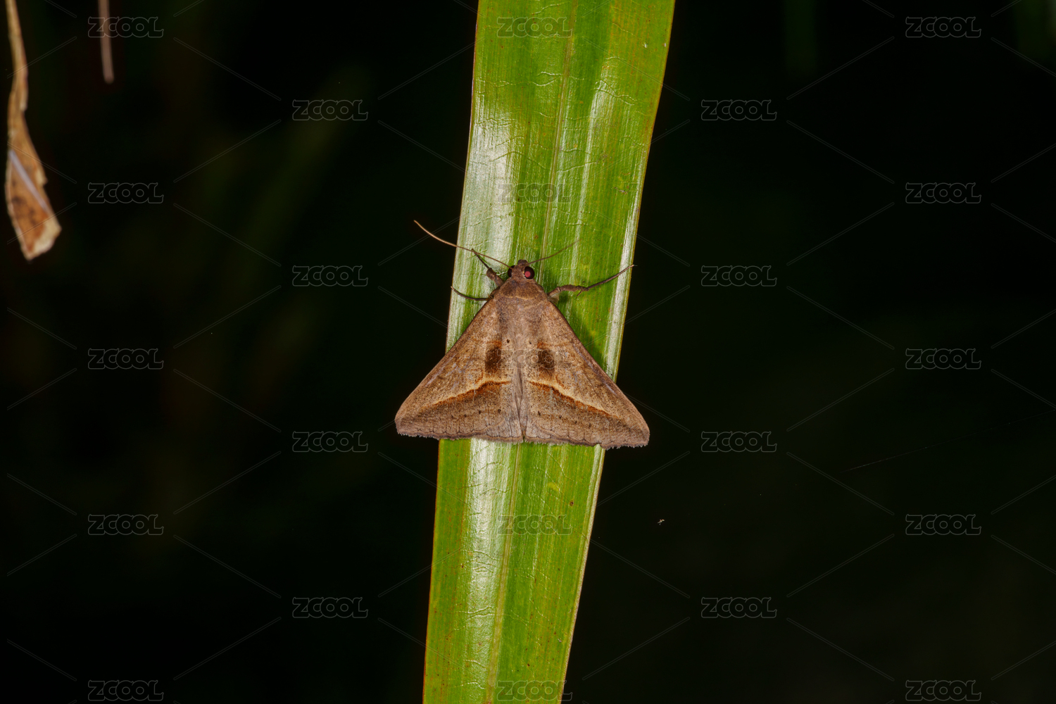 綠葉上的棕色三角飛蛾