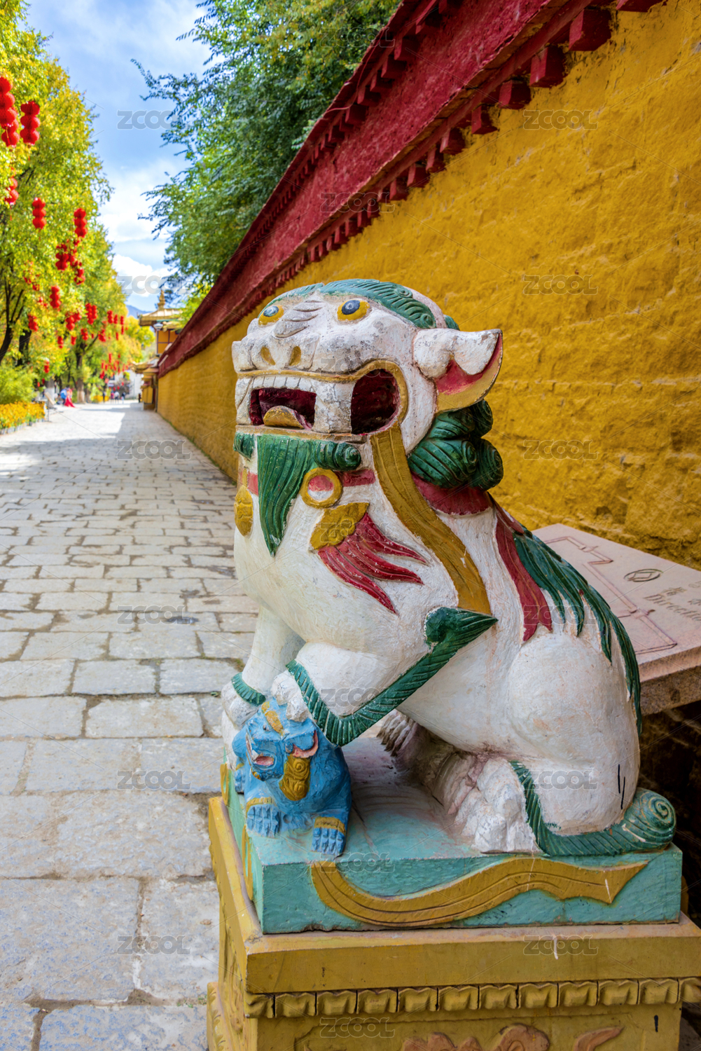 中國西藏拉薩羅布林卡門前的石獅