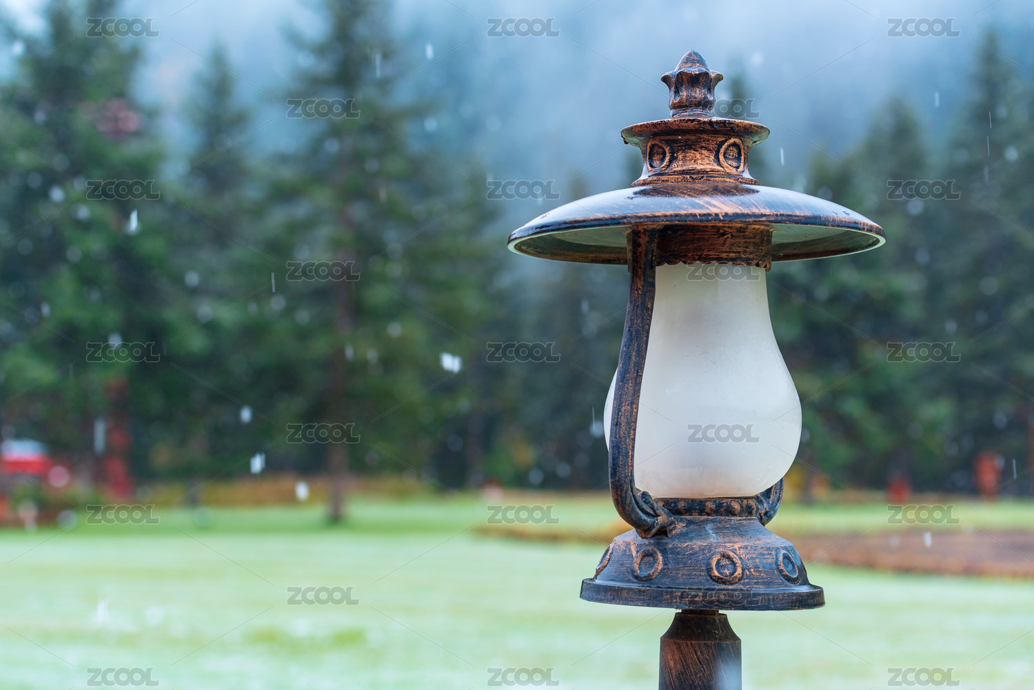 雪中的藏式風(fēng)格路燈局部