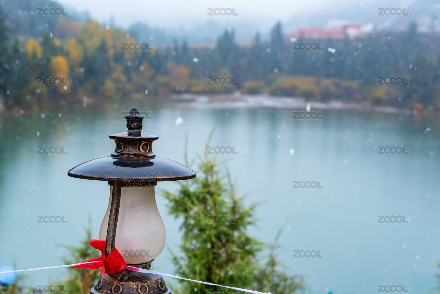 雪中的一盞藏式風(fēng)格的路燈