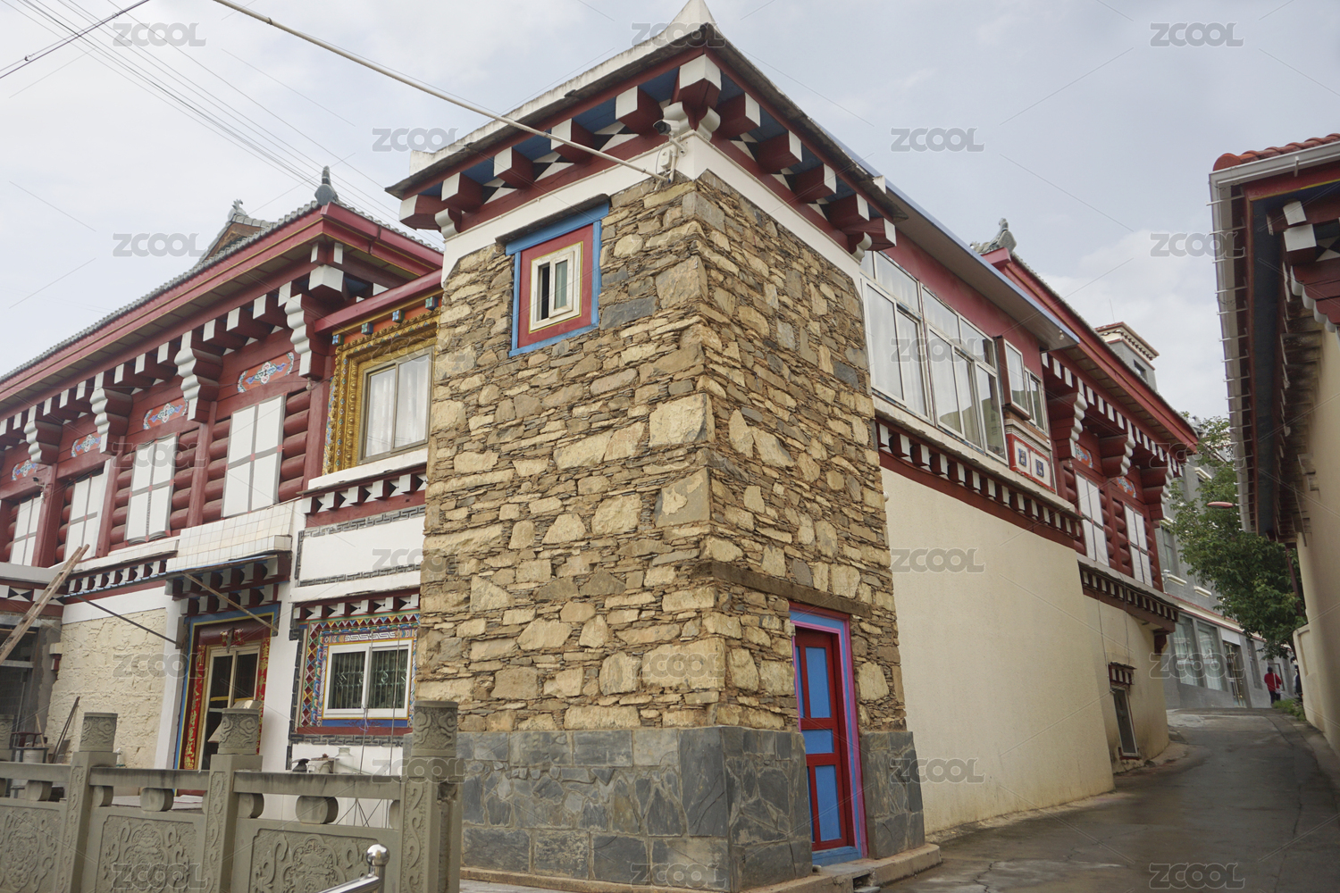 四川松潘川主寺藏式風(fēng)格建筑局部