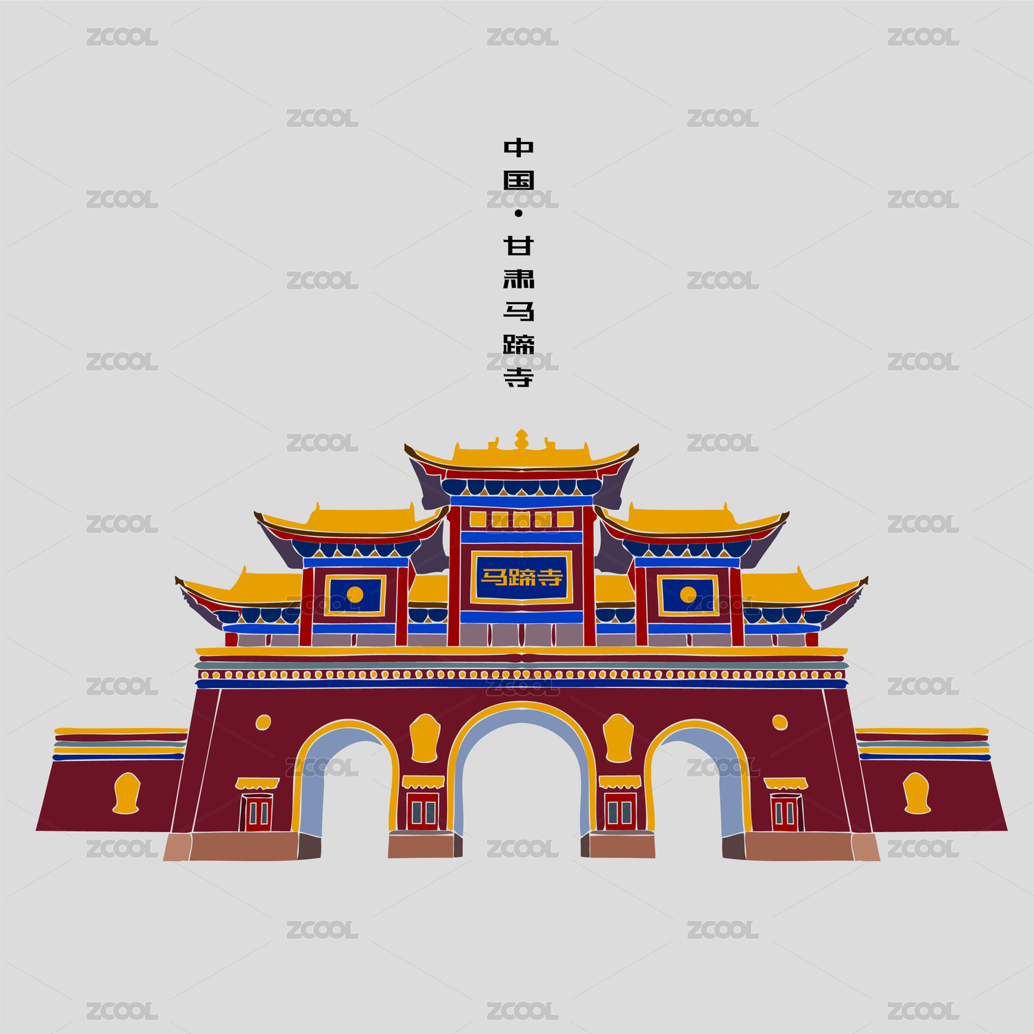 甘肅張掖市馬蹄寺矢量牌坊