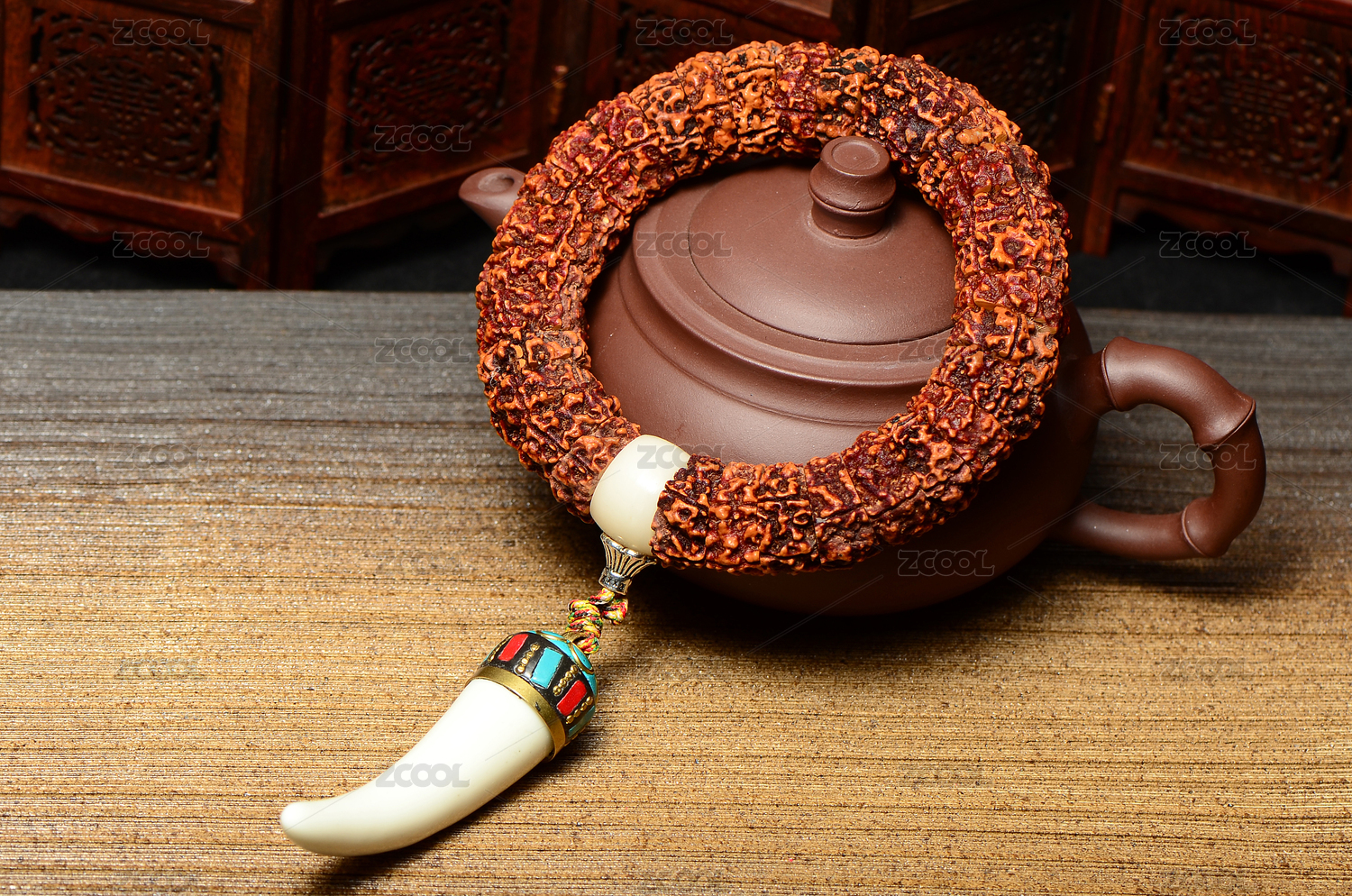 復(fù)古風(fēng)格背景上的藏式大金剛菩提子佛珠手持