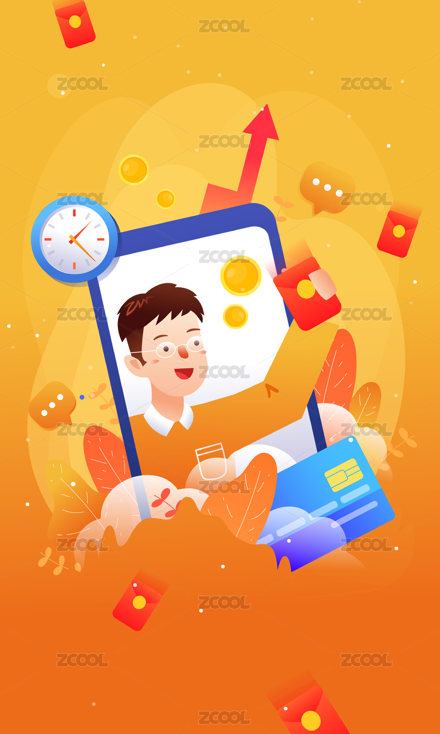 卡通信用卡投資禮包活動金融概念漸變矢量插畫