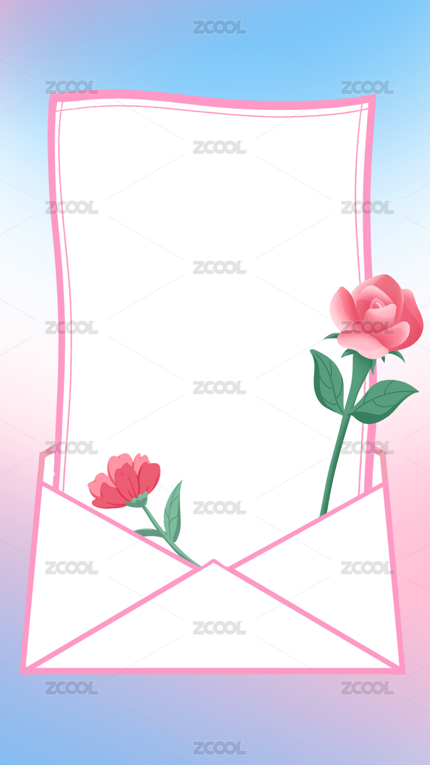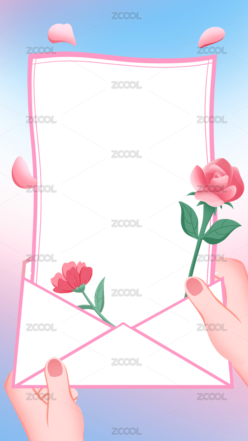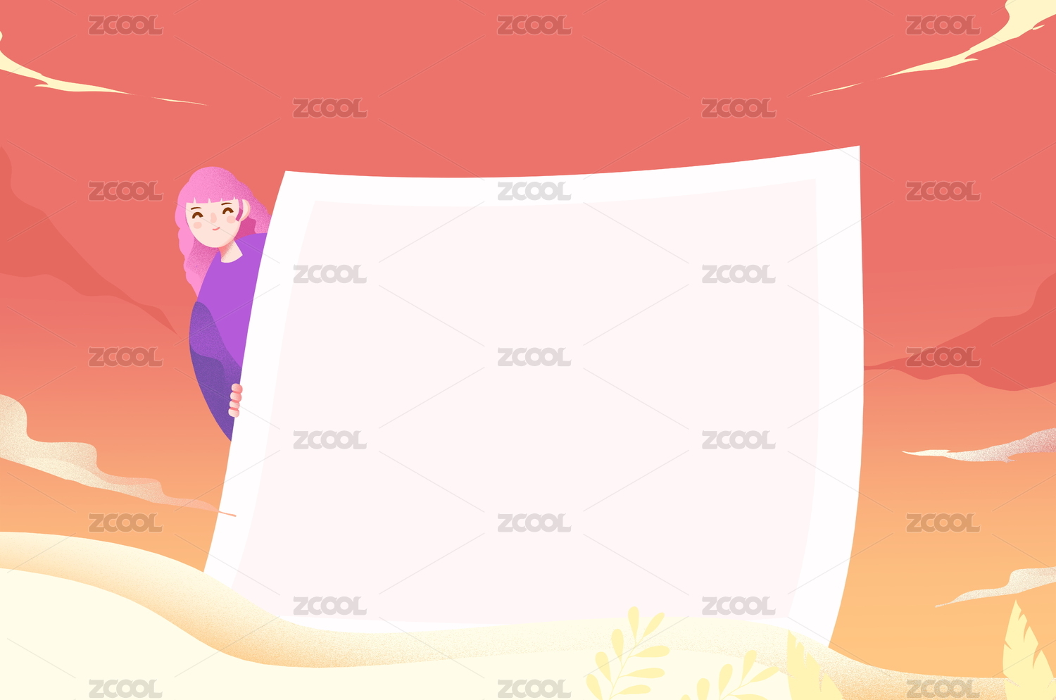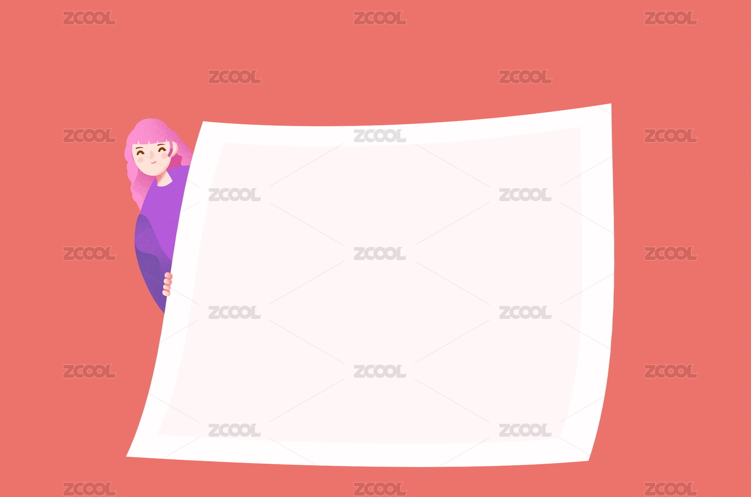 卡通手繪女孩拿紙張面板可編輯信封插畫