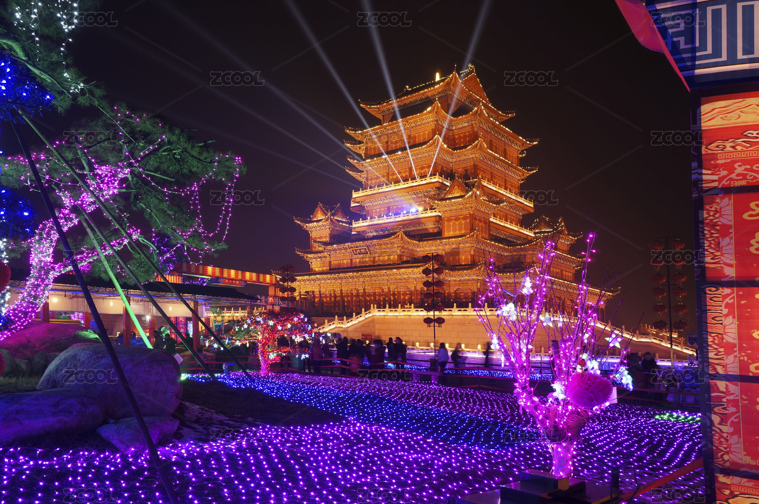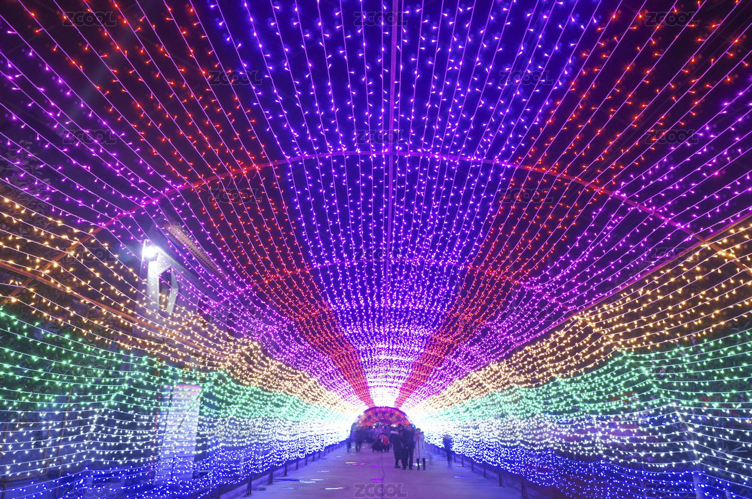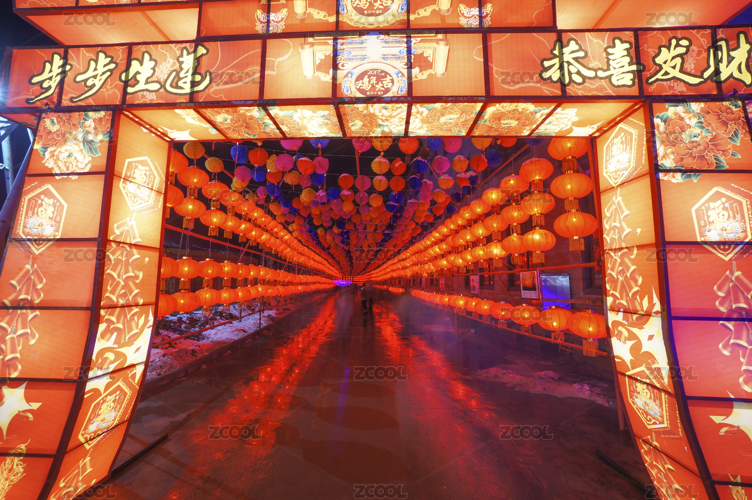 中國中原廟會元宵節(jié)晚上的花燈走廊