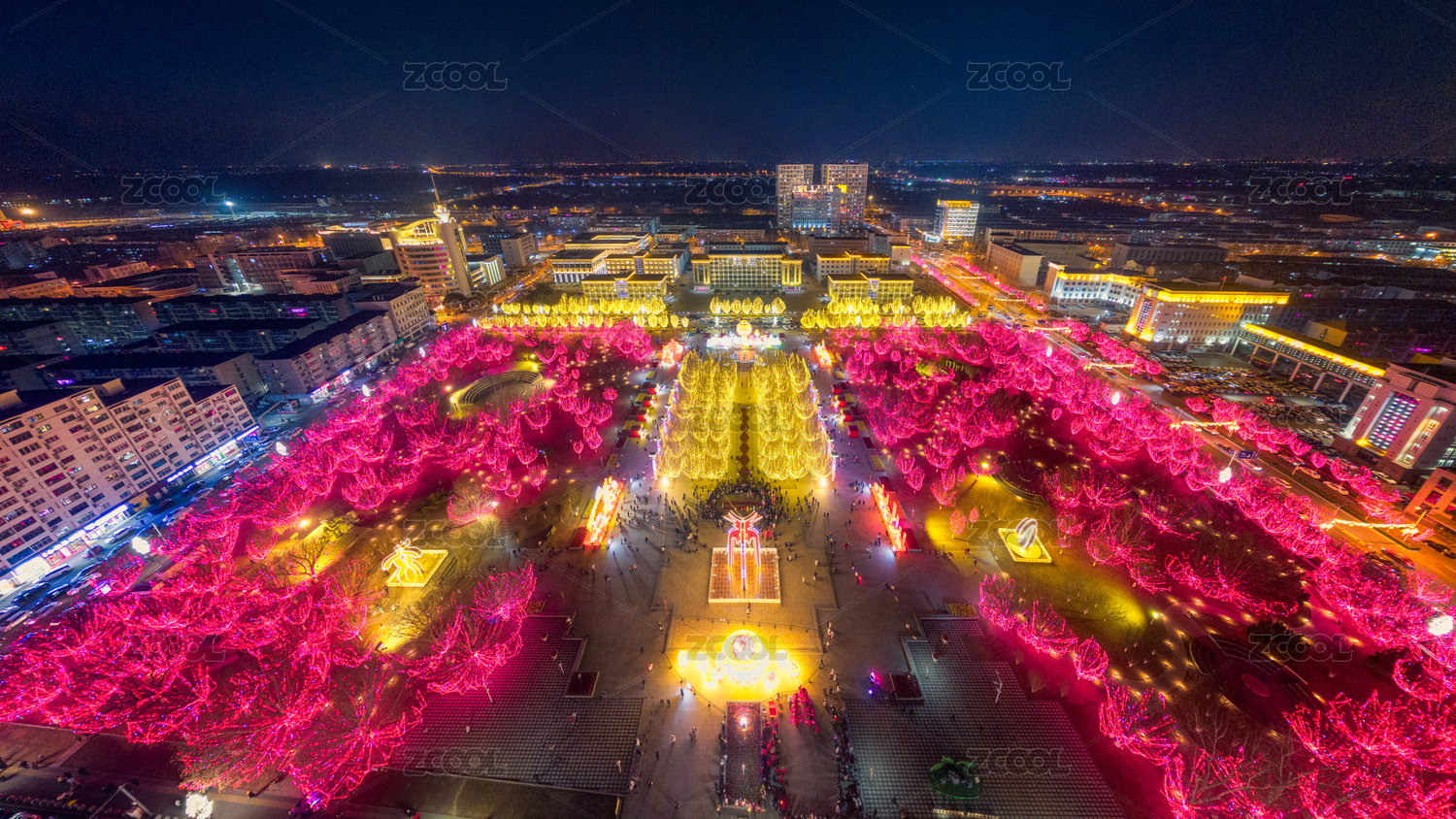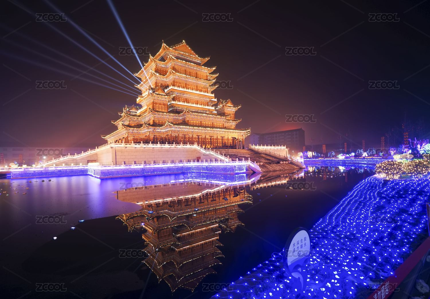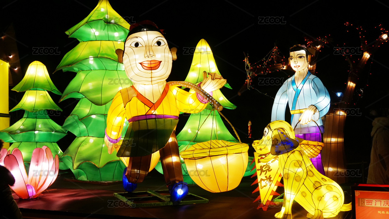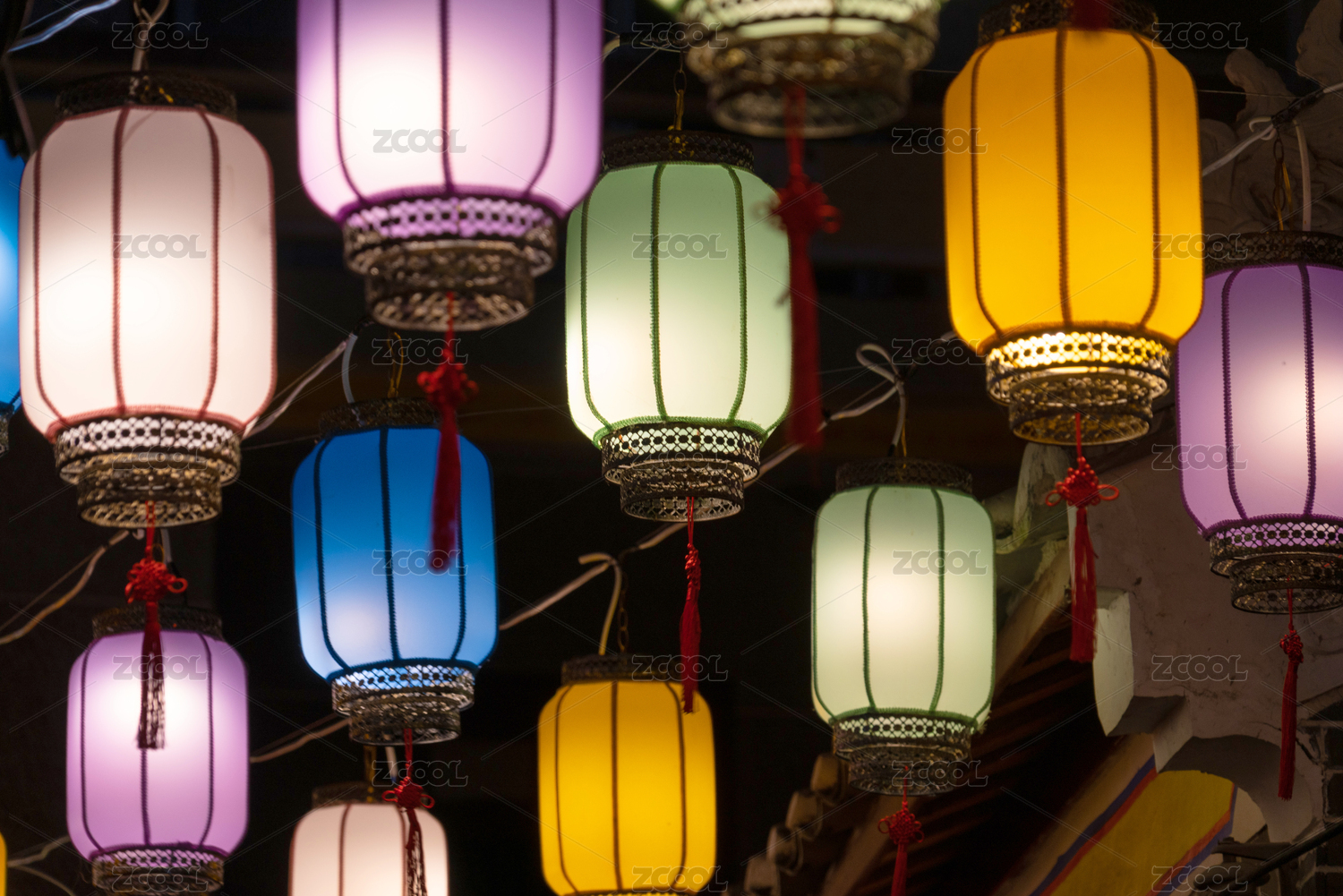 中國中原廟會元宵節(jié)晚上的花燈走廊