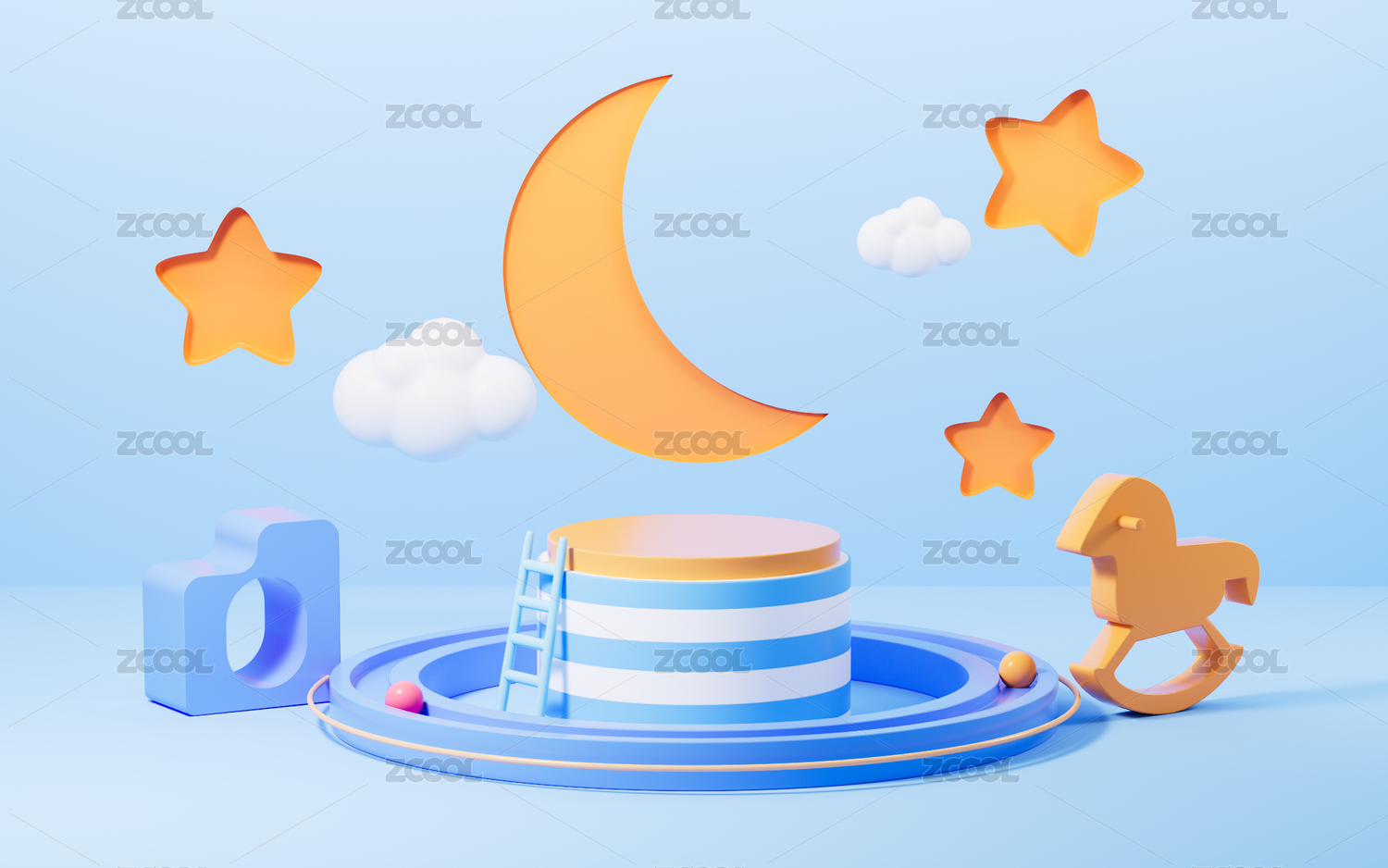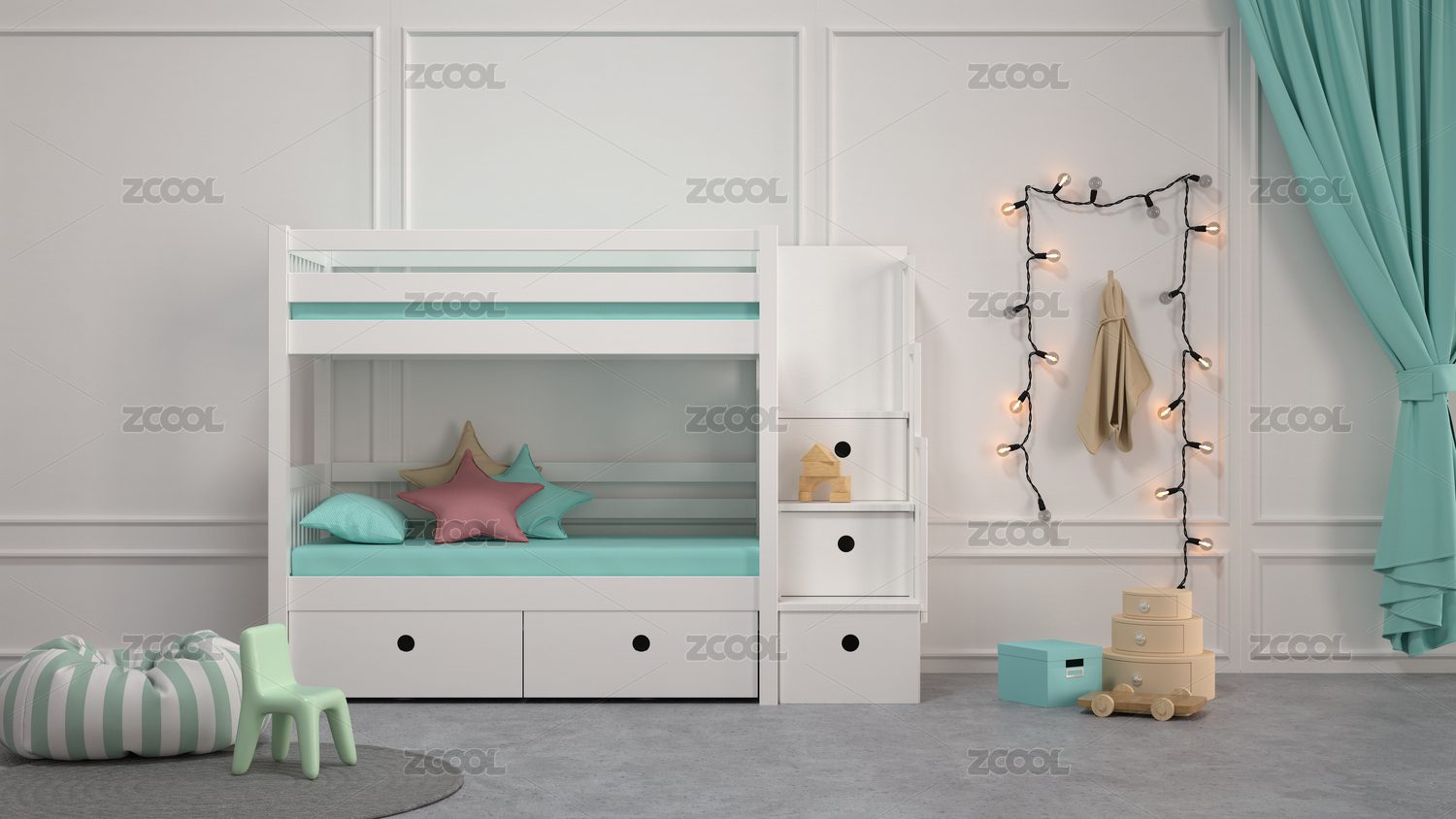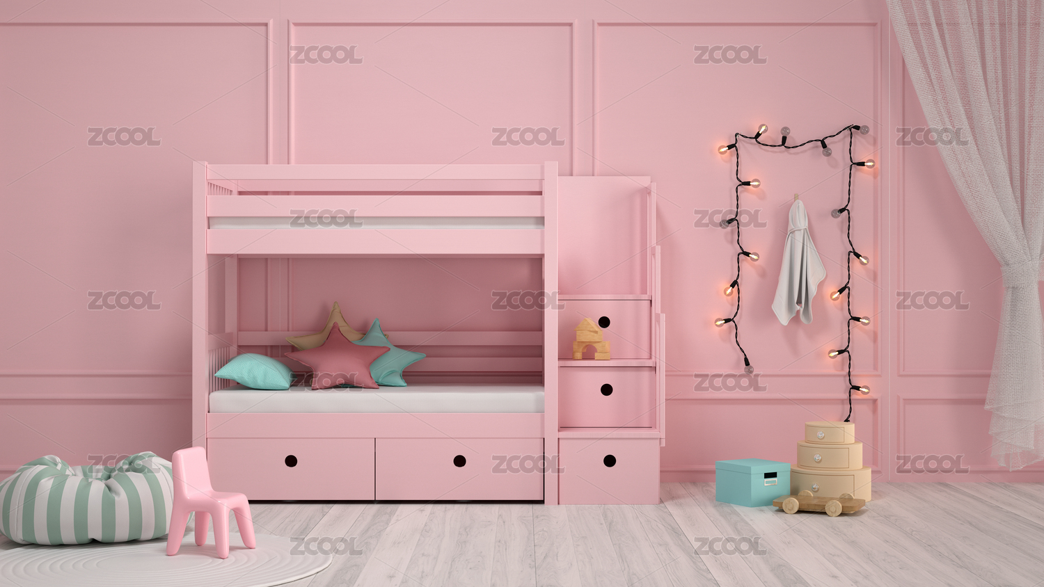 卡通兒童房?jī)和闷氛故九_(tái)3D渲染
