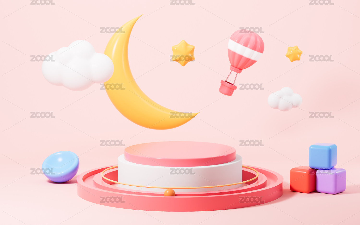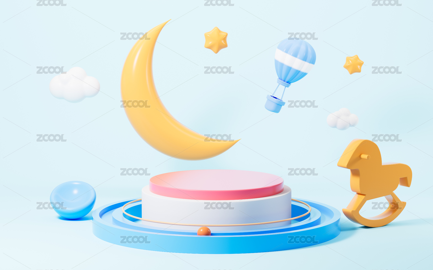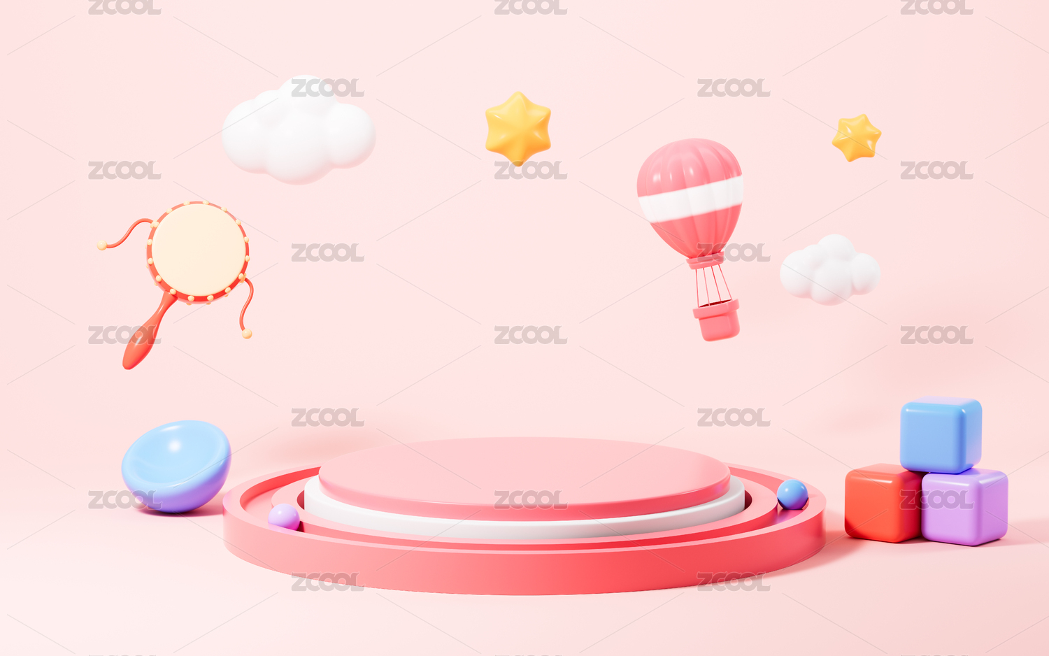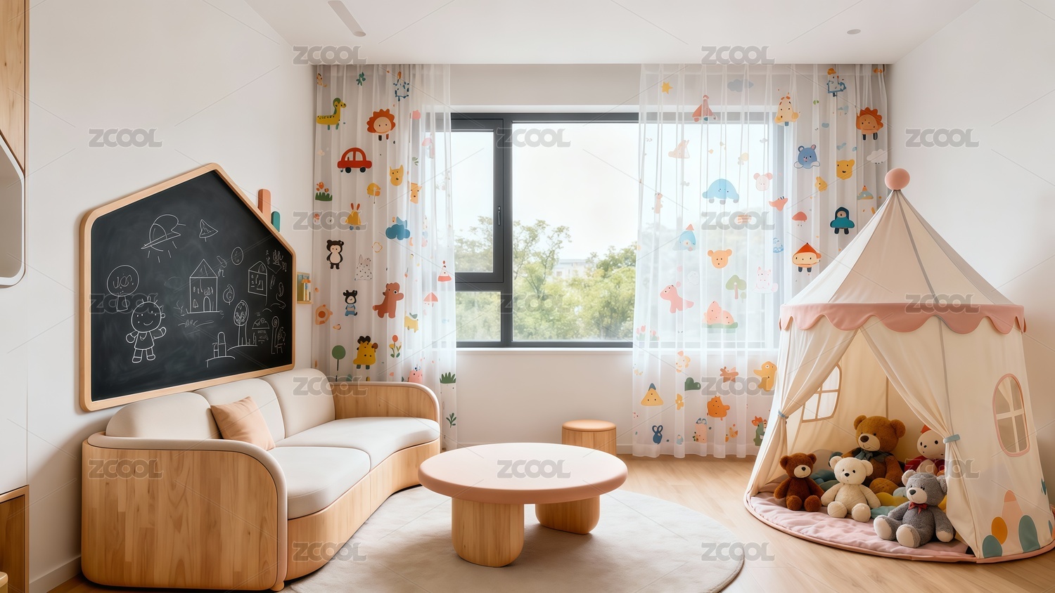 卡通兒童房?jī)和闷氛故九_(tái)3D渲染