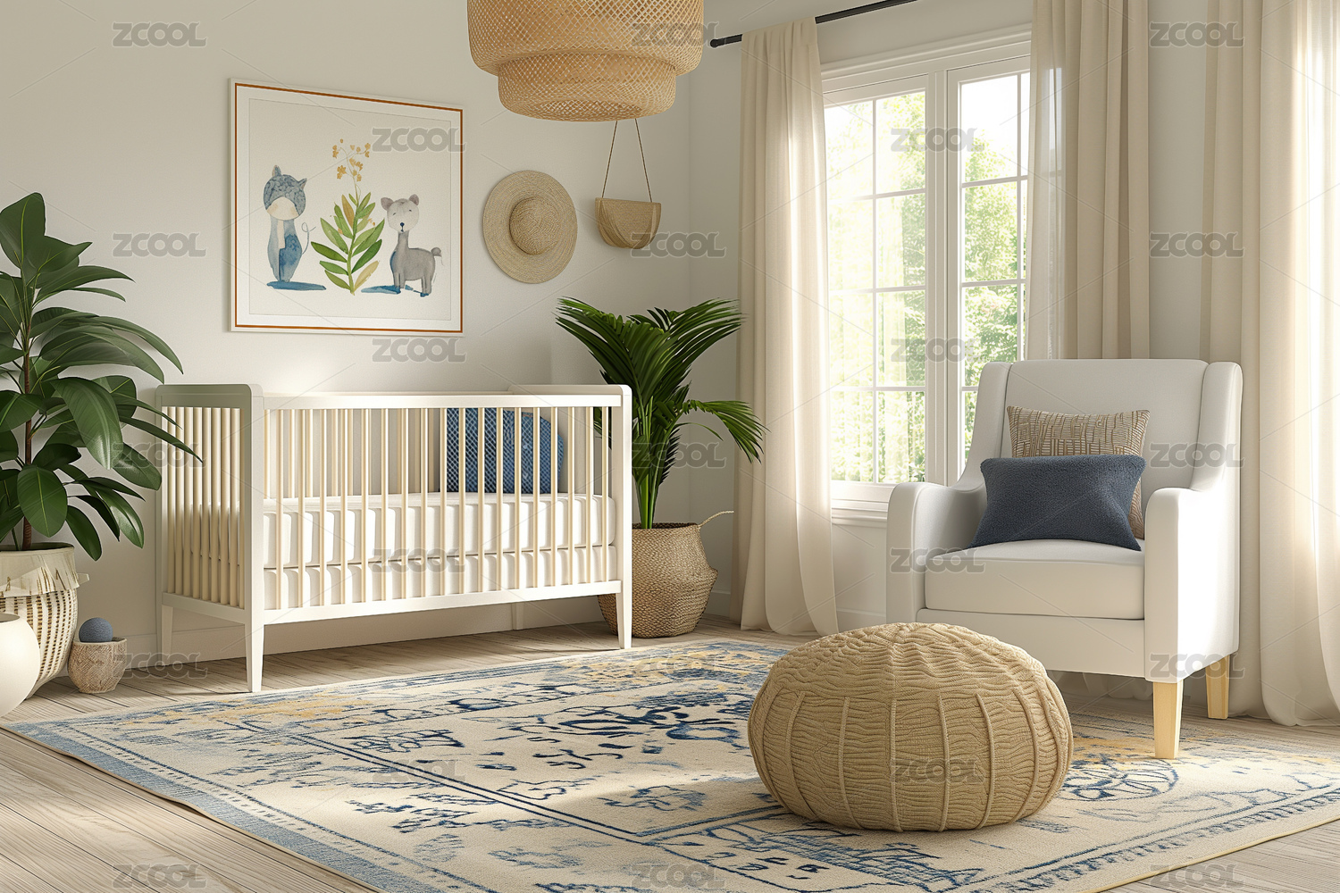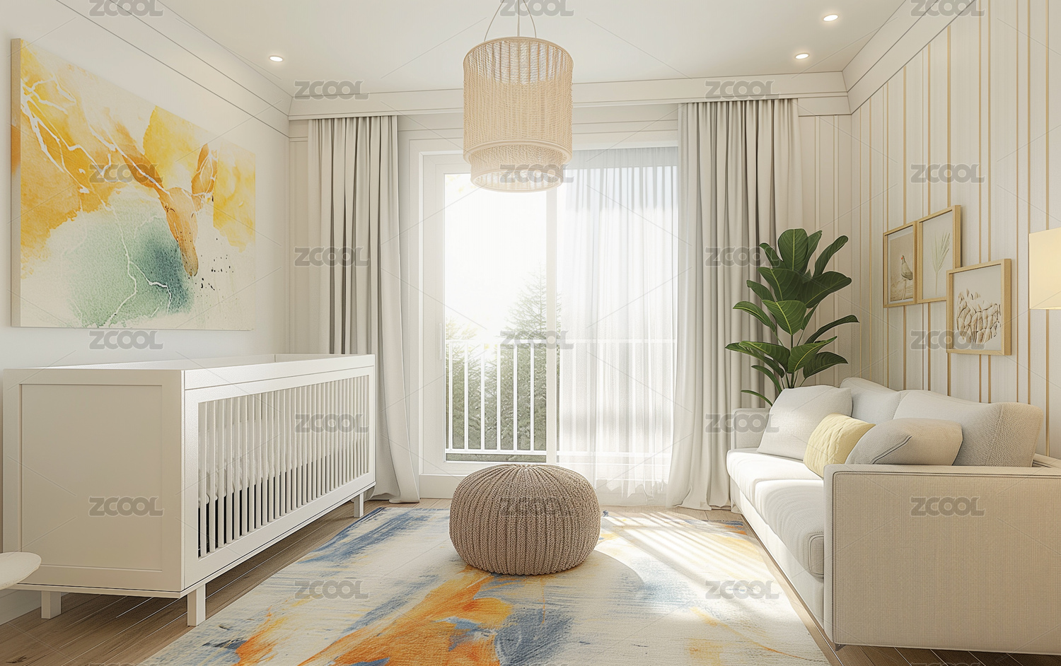卡通兒童折疊推車(chē)和兒童房3D渲染