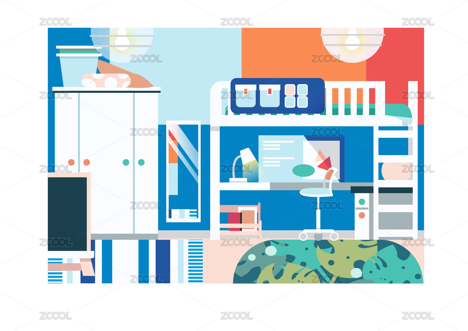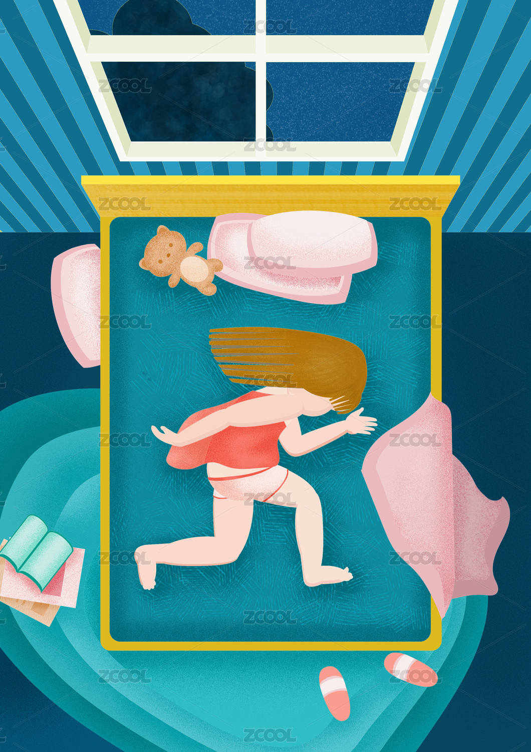兒童房間小孩睡覺(jué)睡姿插畫(huà)