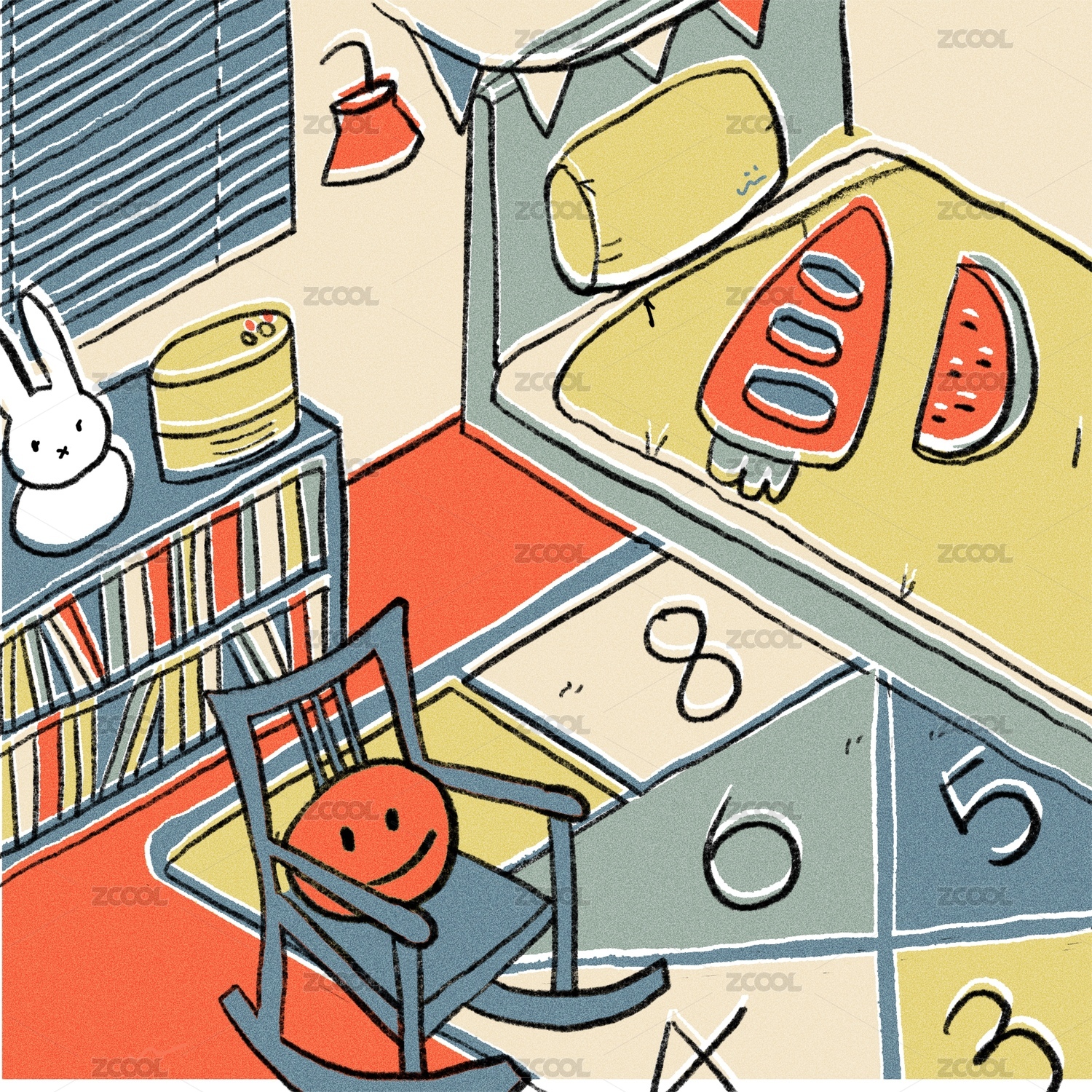 兒童房間孤獨(dú)小女孩插畫(huà)