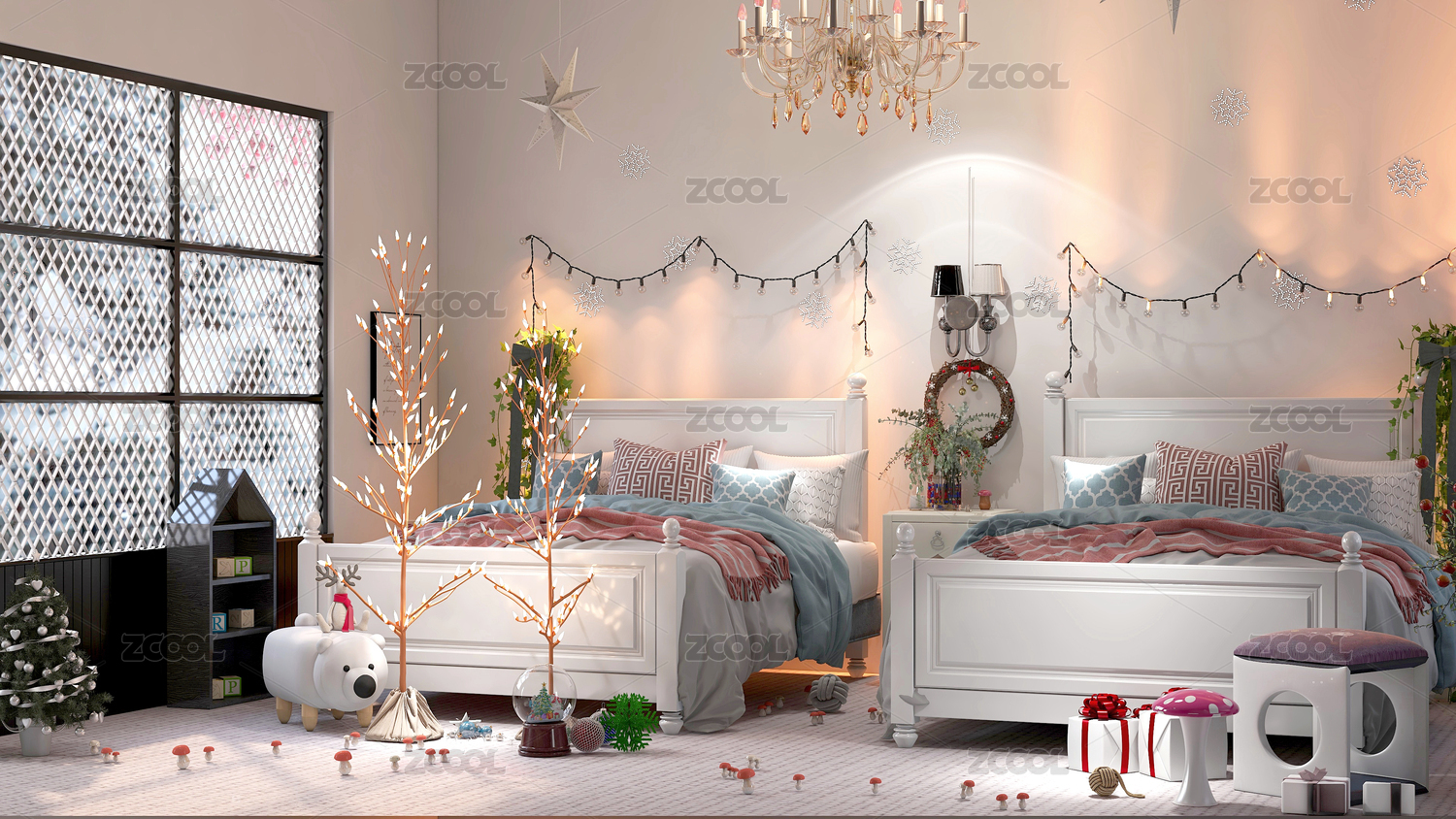 3D兒童房間臺(tái)燈蛋糕玩具小火車(chē)桌子圖