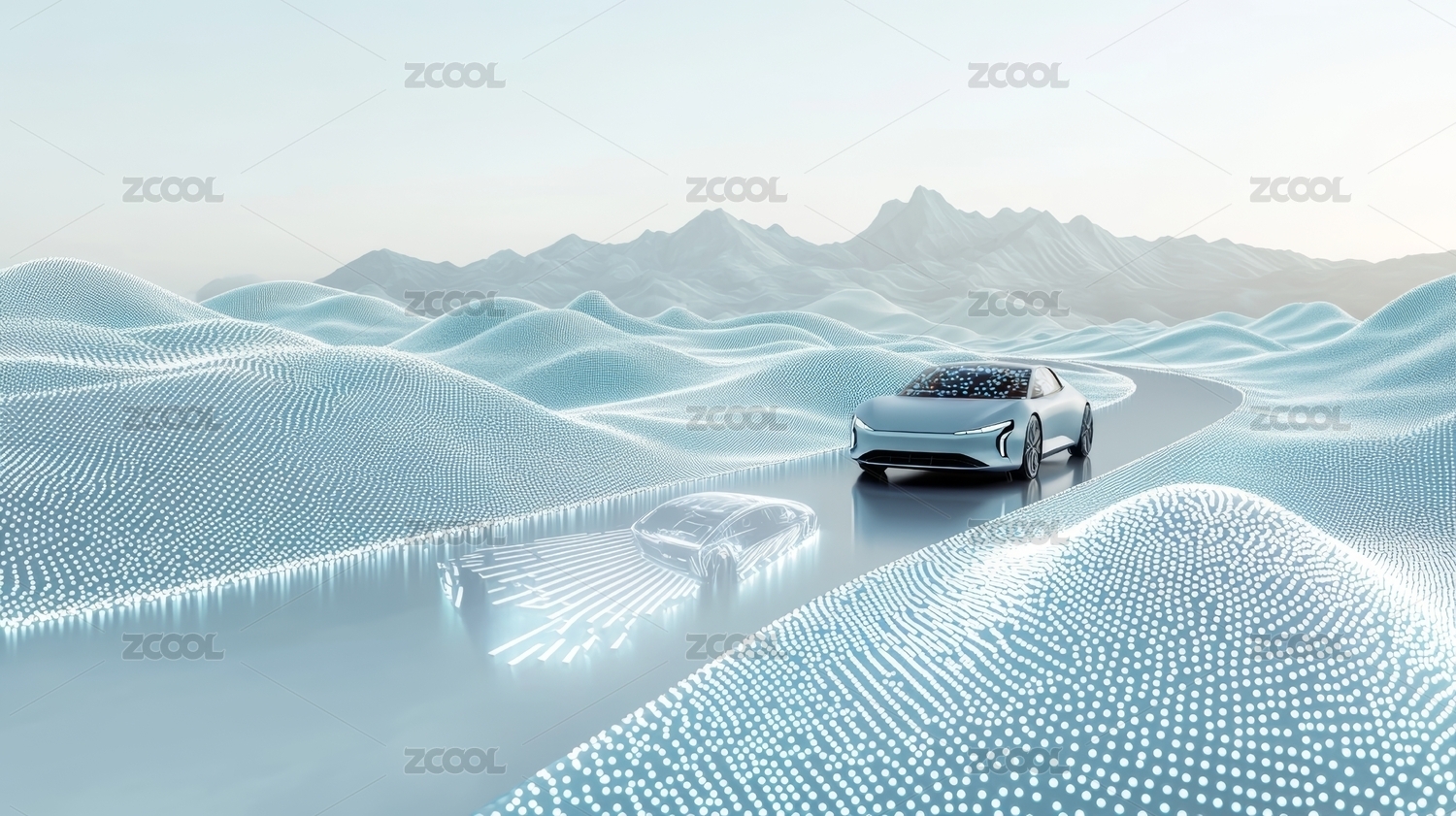 無人駕駛自動(dòng)駕駛技術(shù)概念3D渲染