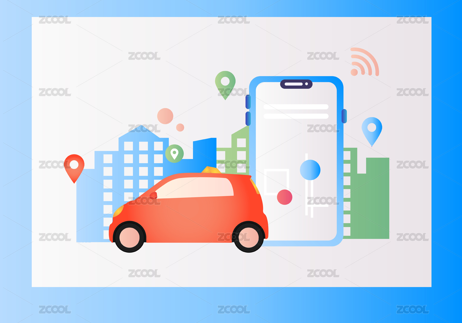 智能交通商務(wù)定位出行扁平風(fēng)汽車行駛矢量圖