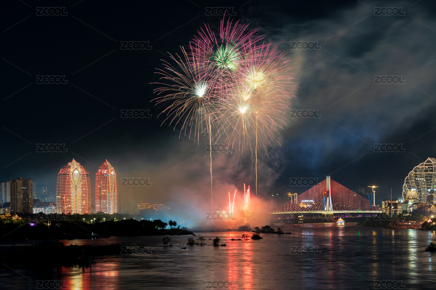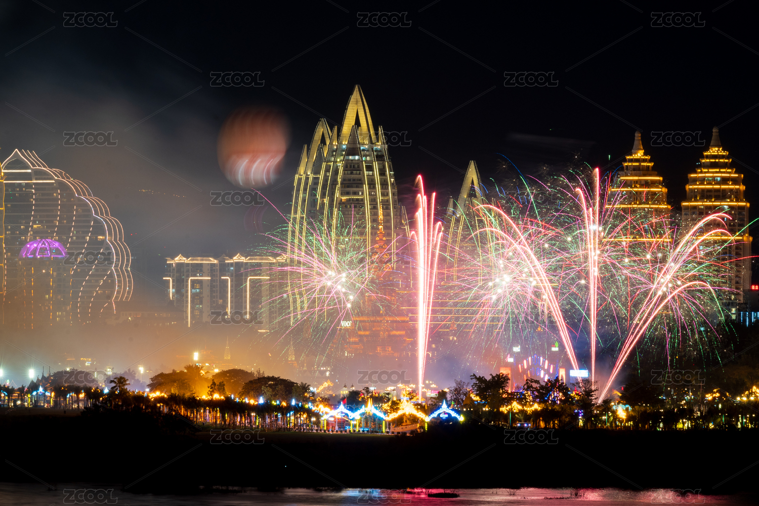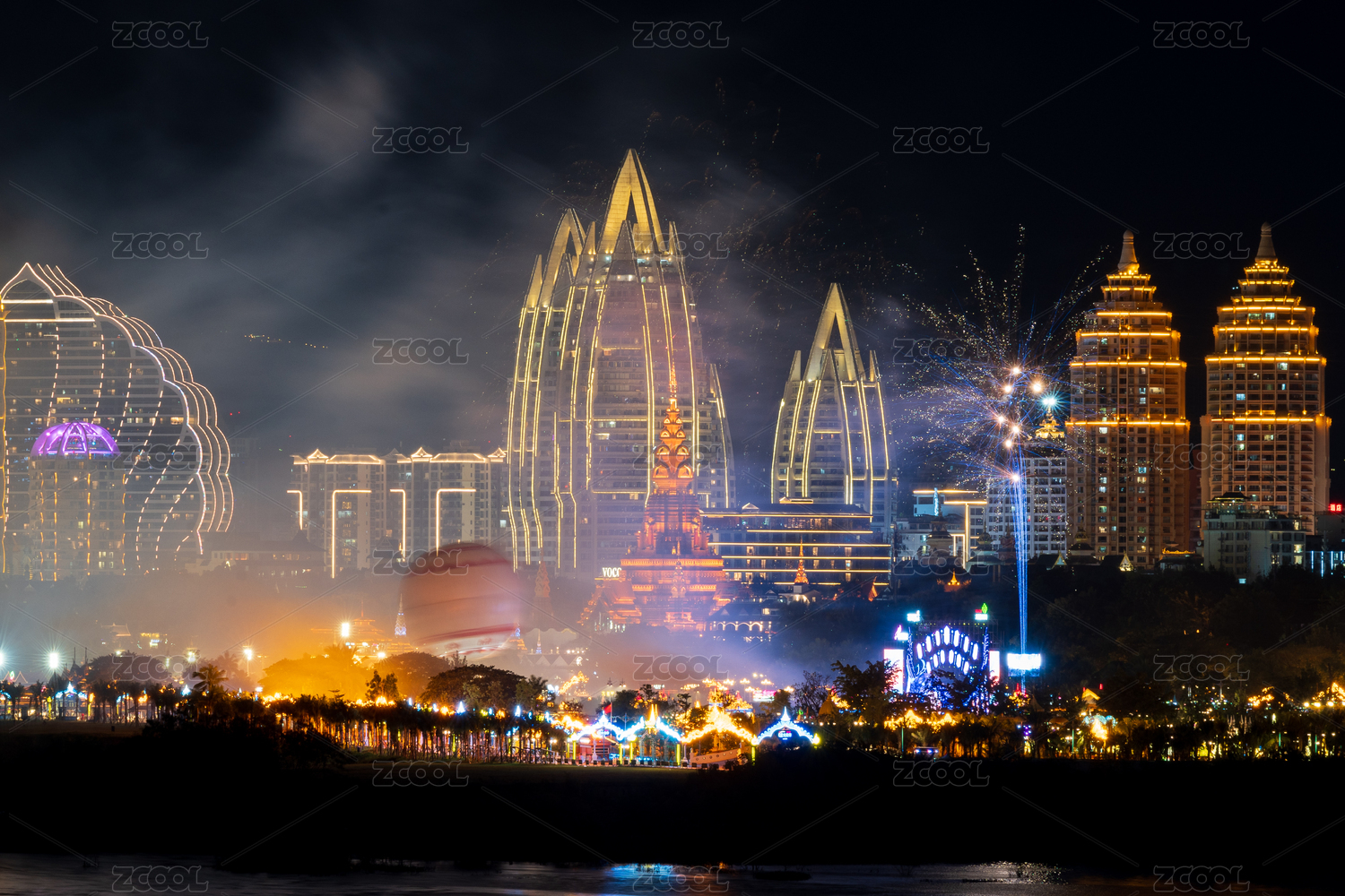 西雙版納告莊西雙景夜空絢爛煙花秀