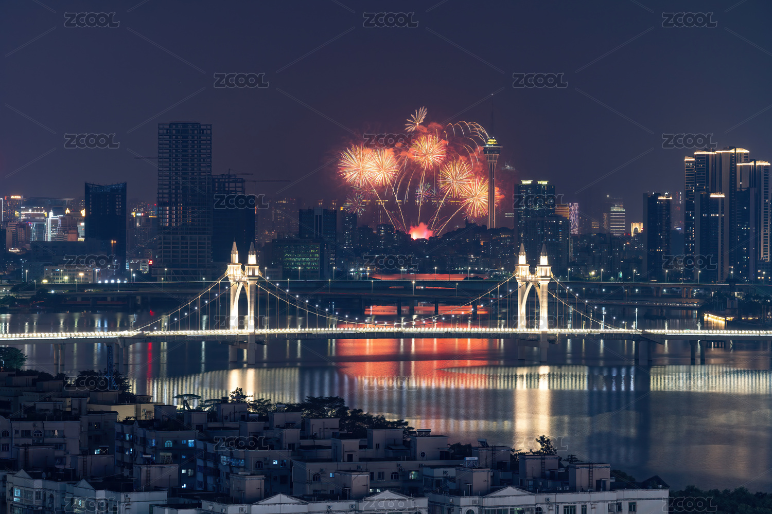 澳門(mén)半島新葡京澳門(mén)塔CBD夜景煙花秀