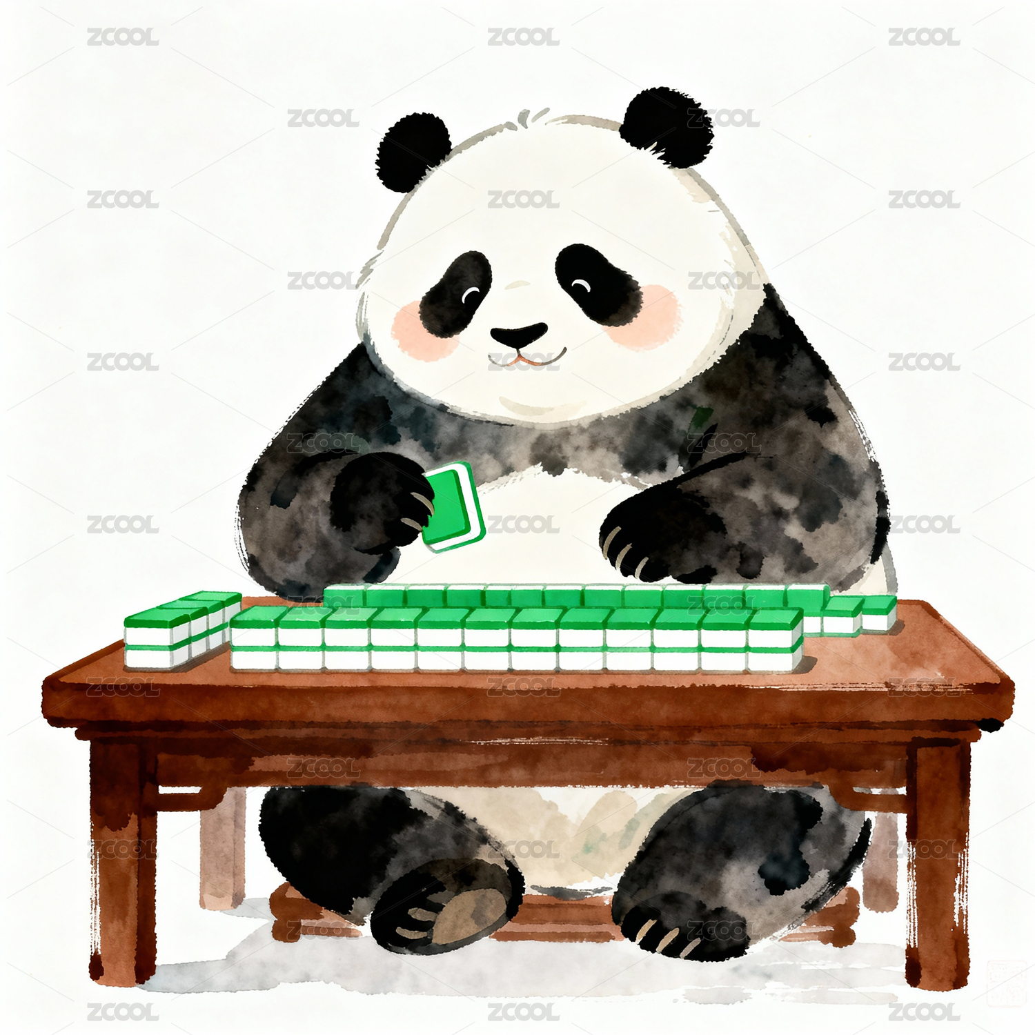熊貓打麻將大熊貓水墨畫