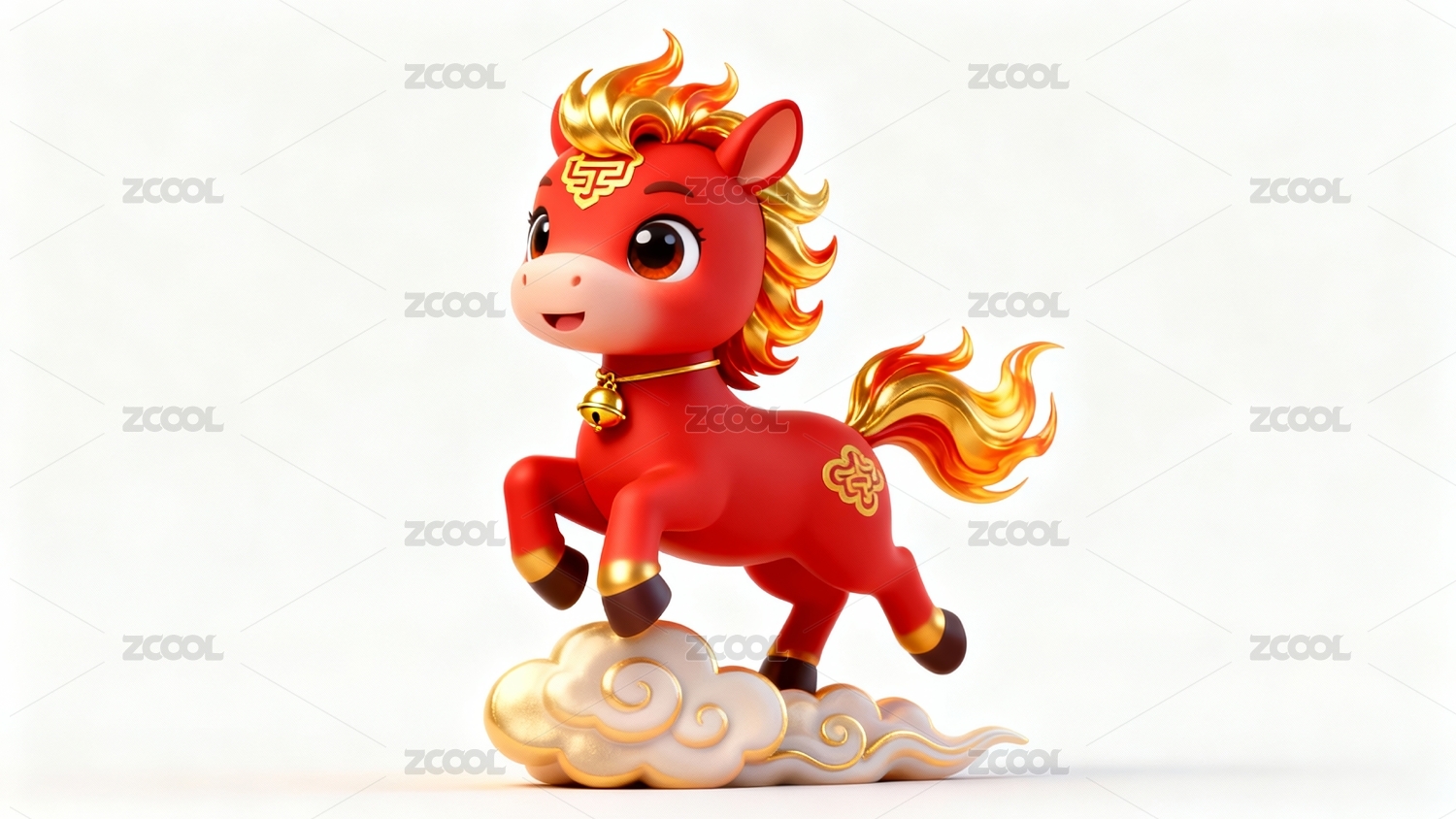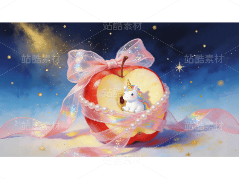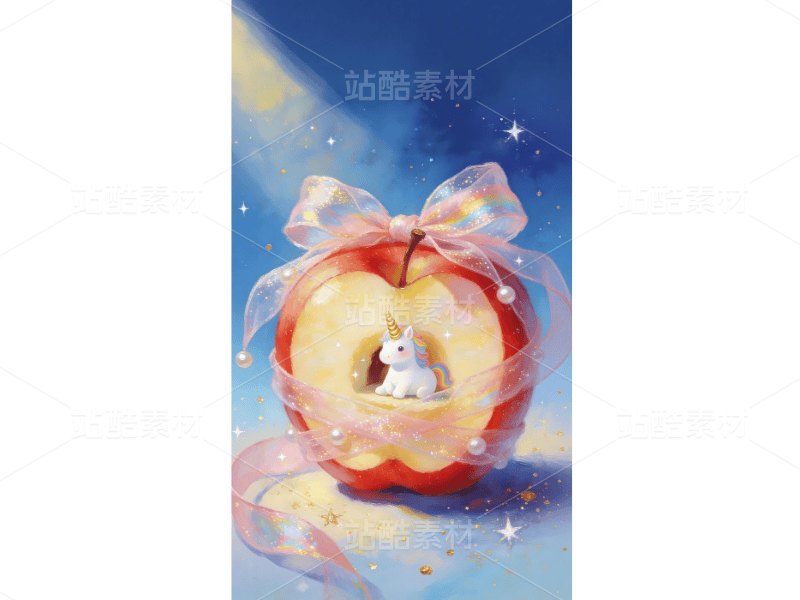 4k高清 豎版蘋果獨角獸 馬年好運守護 治愈系厚涂插畫
