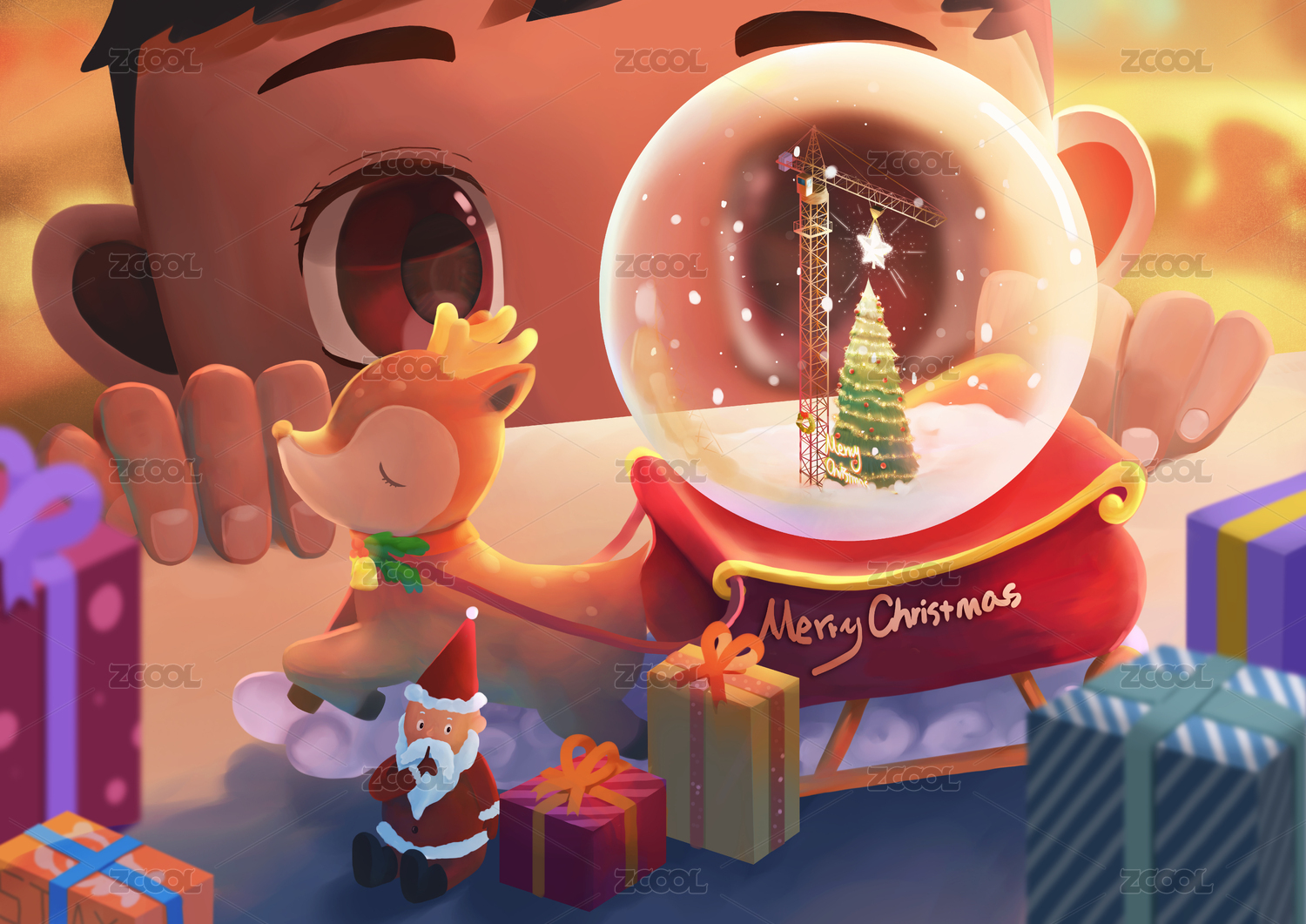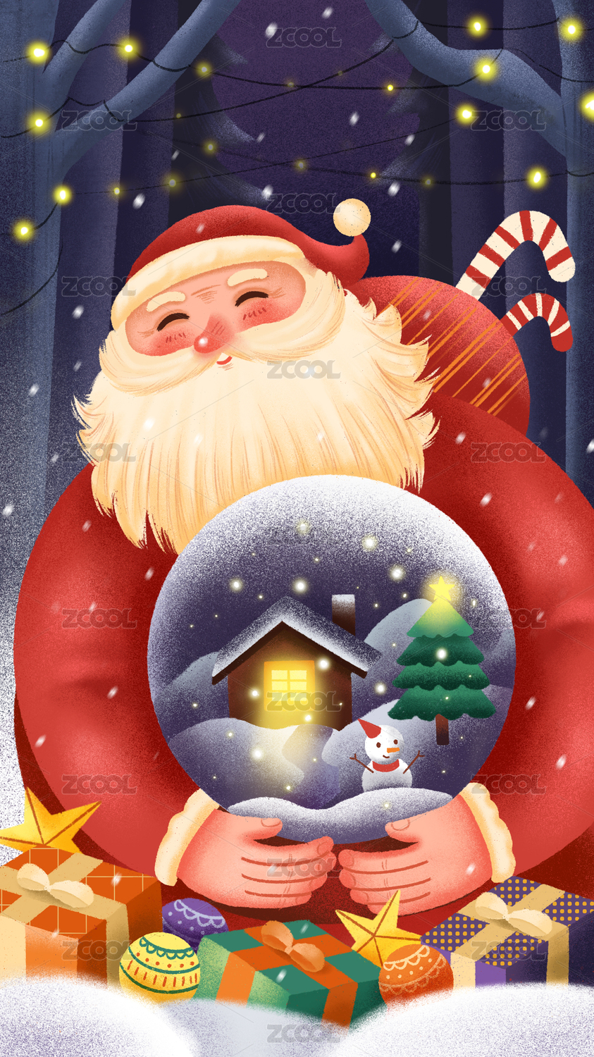 圣誕節(jié)禮物卡通背景海報雪人水晶球裝飾插畫