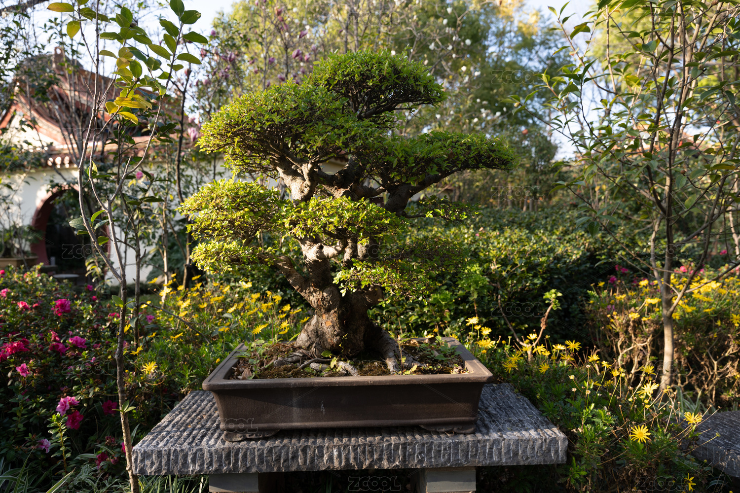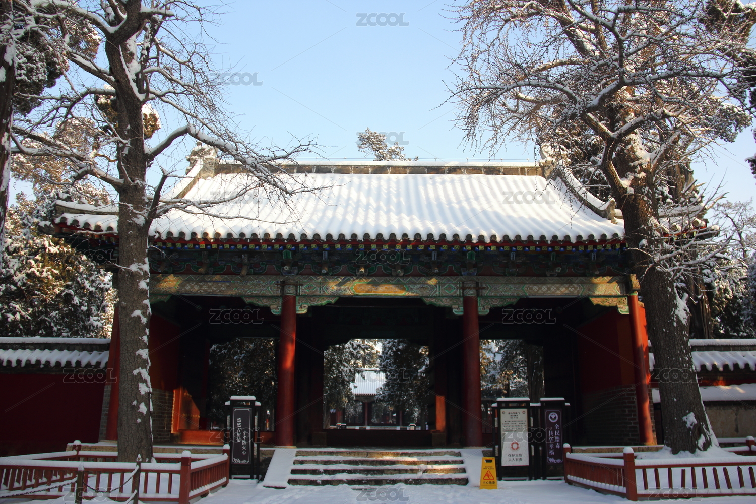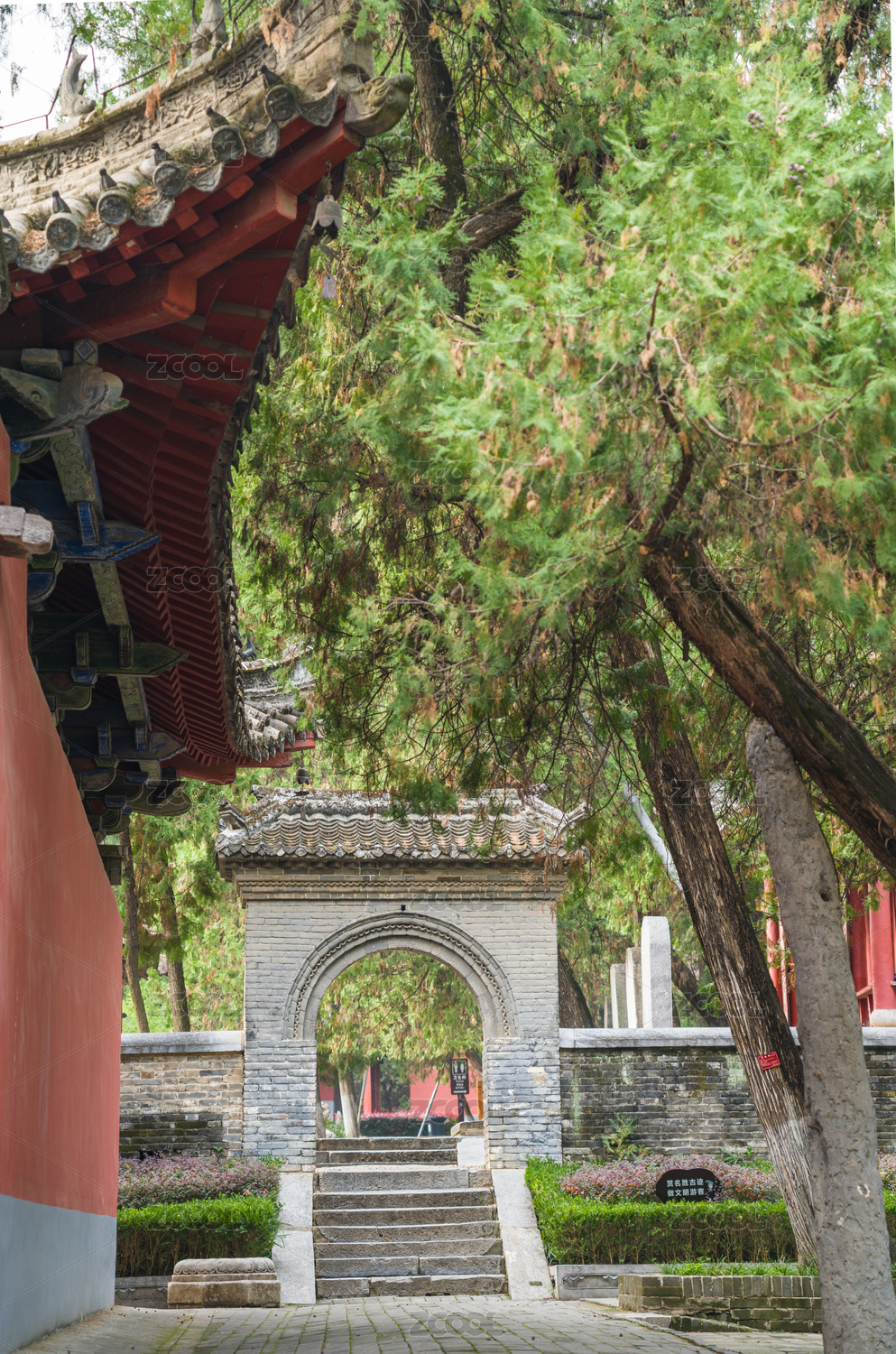 河南南陽臥龍崗武侯祠景區(qū)蒼松翠柏下古建筑