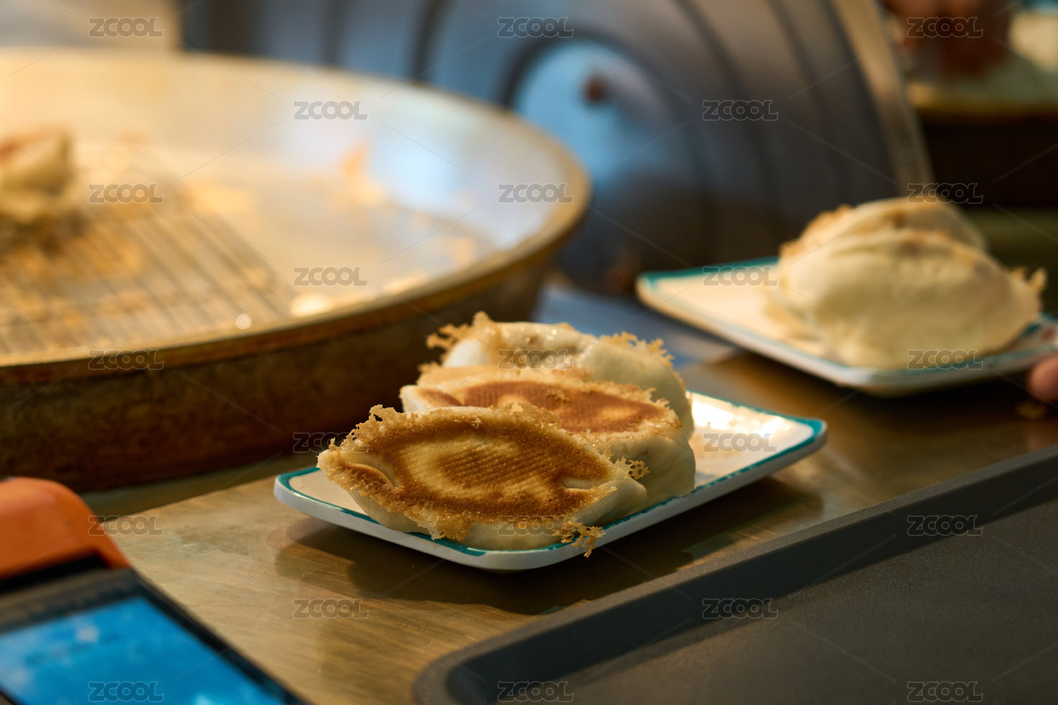 后廚正在忙碌的處理面點包子售賣
