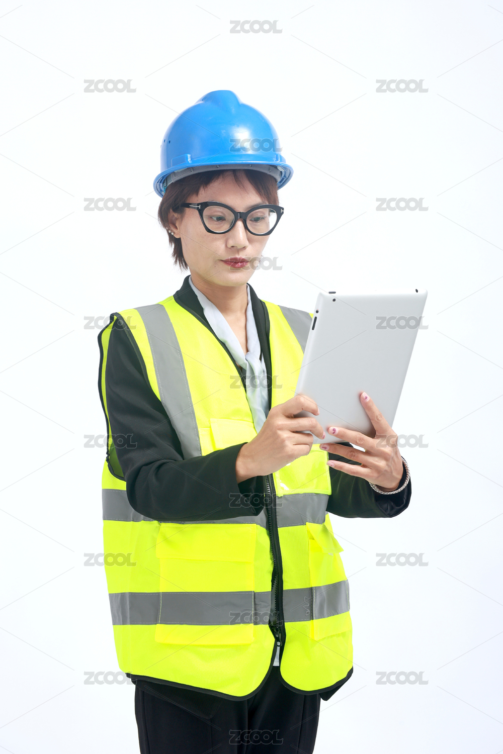 帶著安全帽的中年女性工程師形象