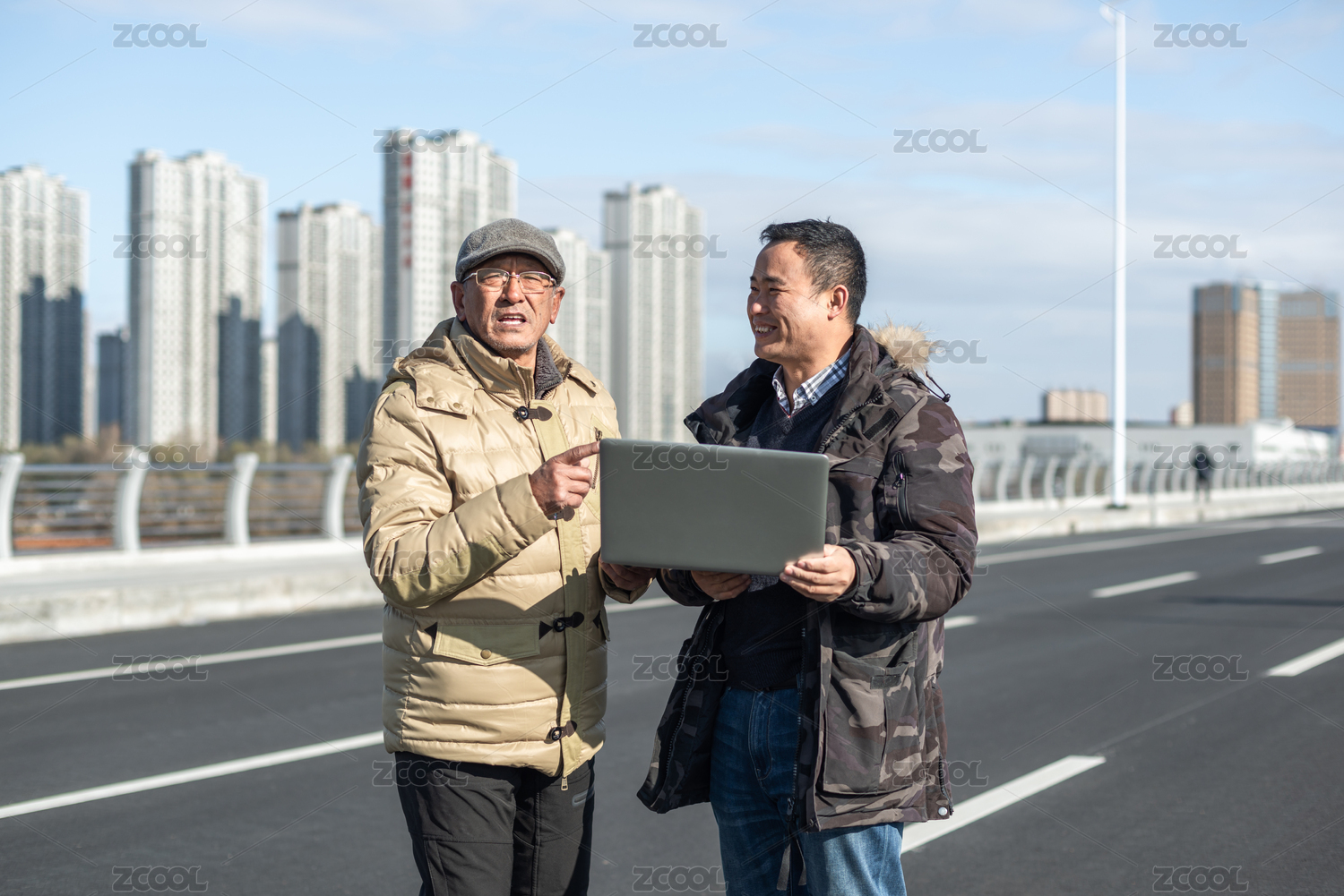 兩名男性工程師站在公路上