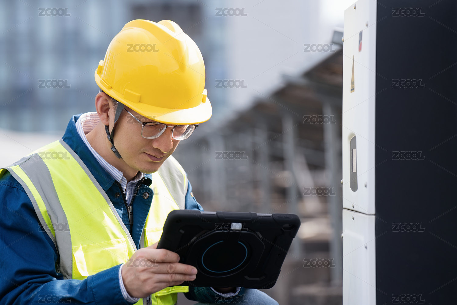 工程師在屋頂光伏發(fā)電站