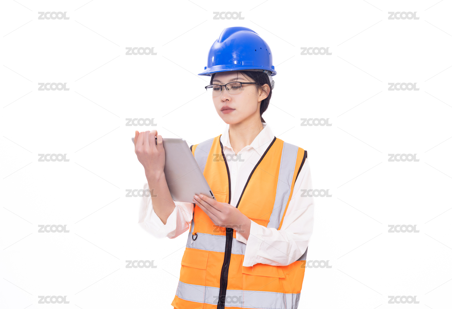 年輕東方女性工程師形象使用平板電腦