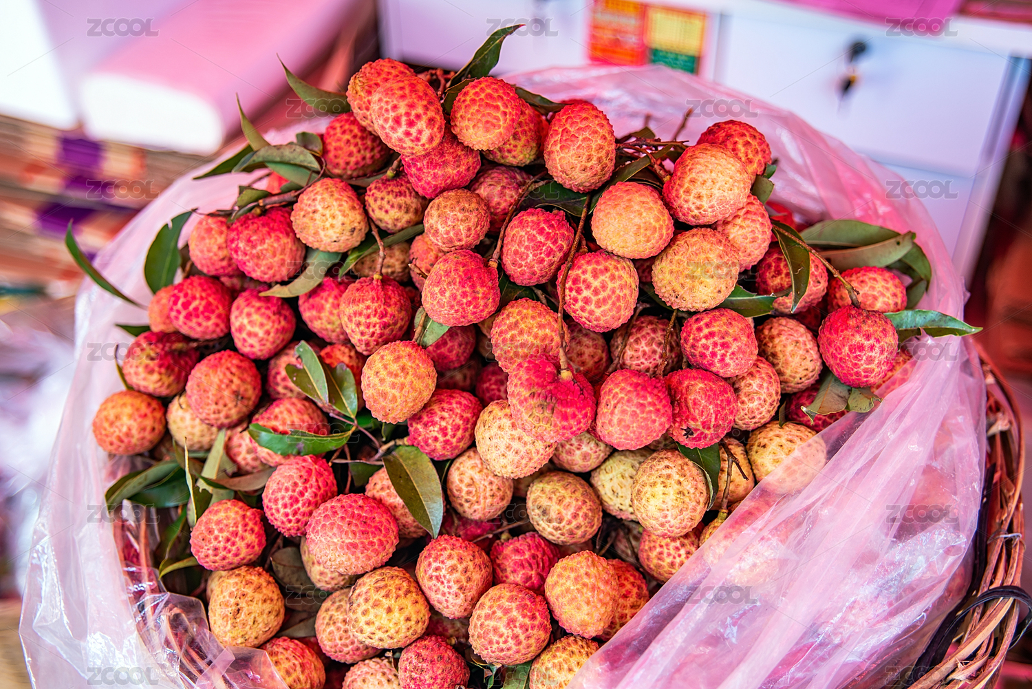 一籮筐新鮮荔枝