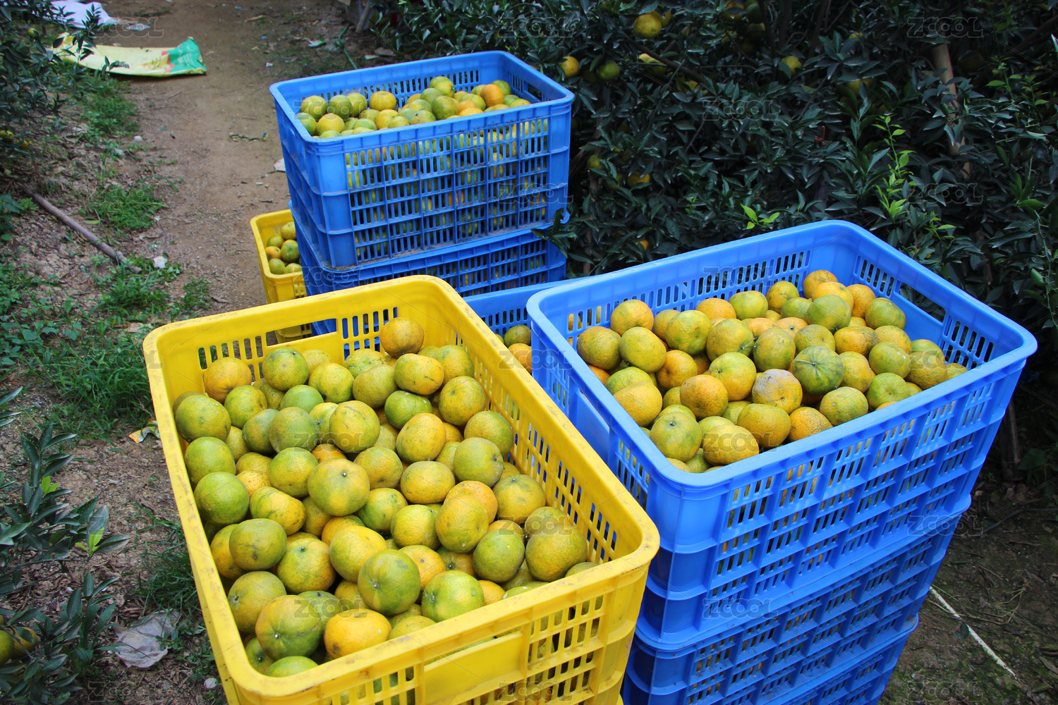 幾箱堆滿籮筐的新鮮橘子橙子