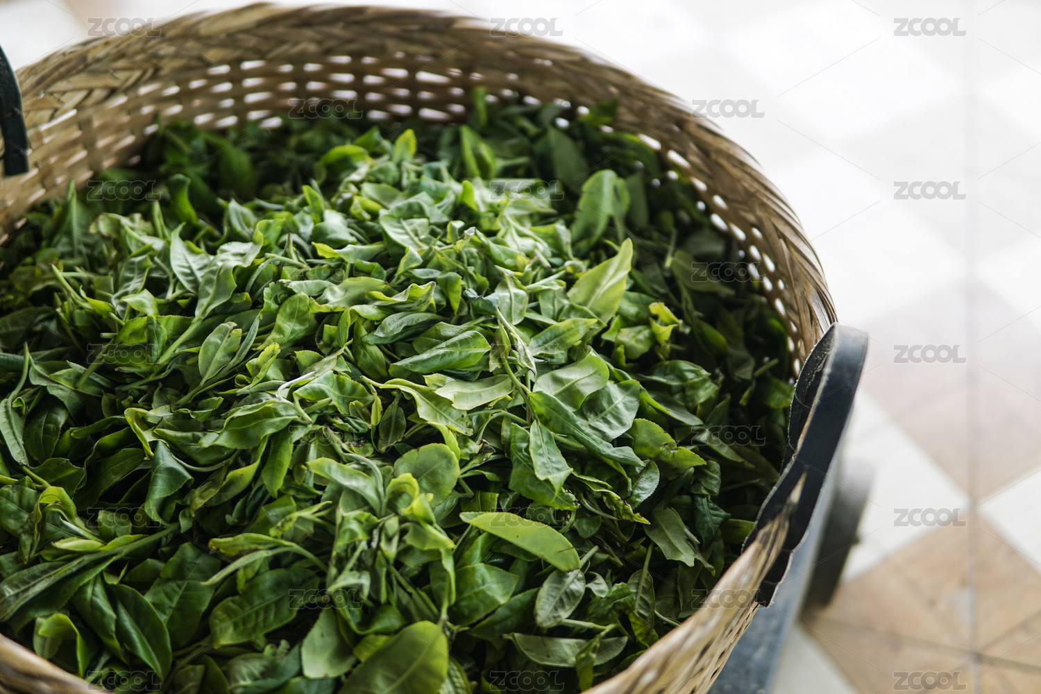 采茶歸來籮筐中的云南大葉種古樹普洱茶