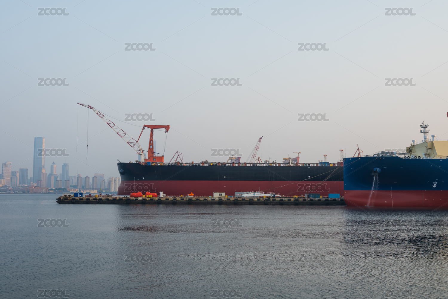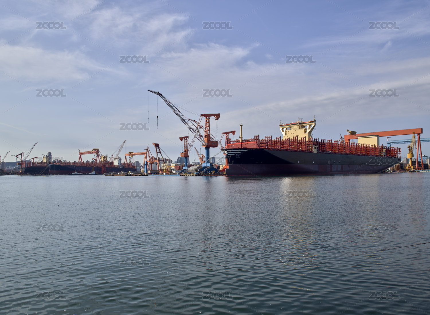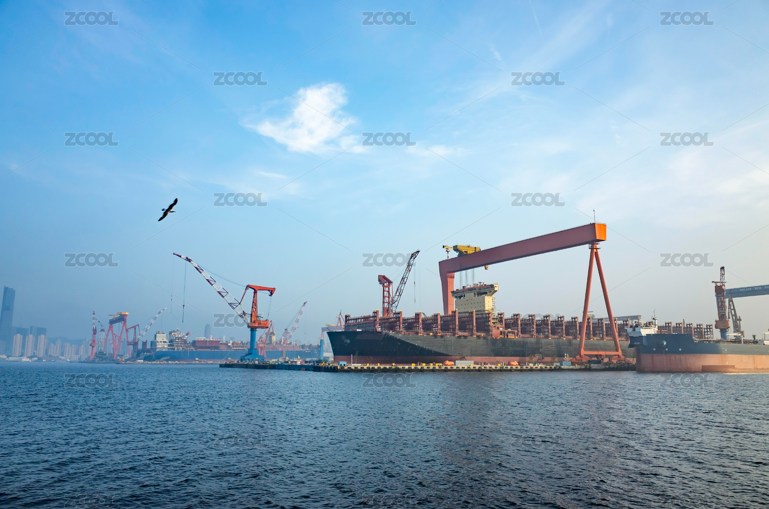 大連鉆石灣造船廠海邊正在建造的萬噸巨輪