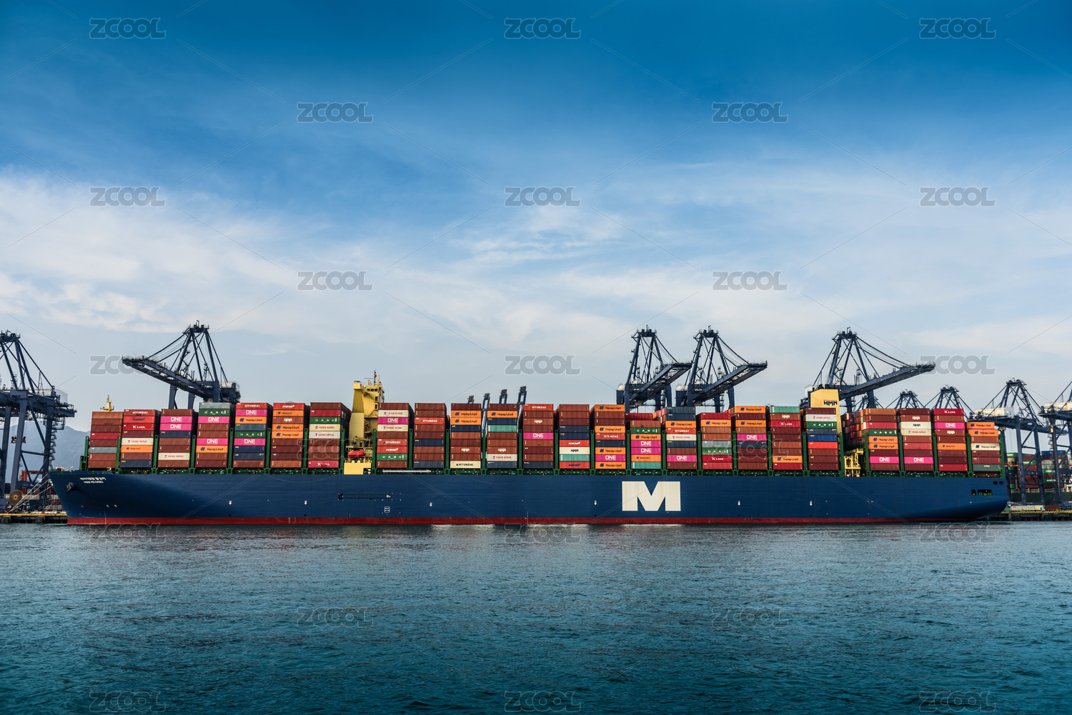 停靠在深圳市鹽田港口碼頭上巨大貨輪