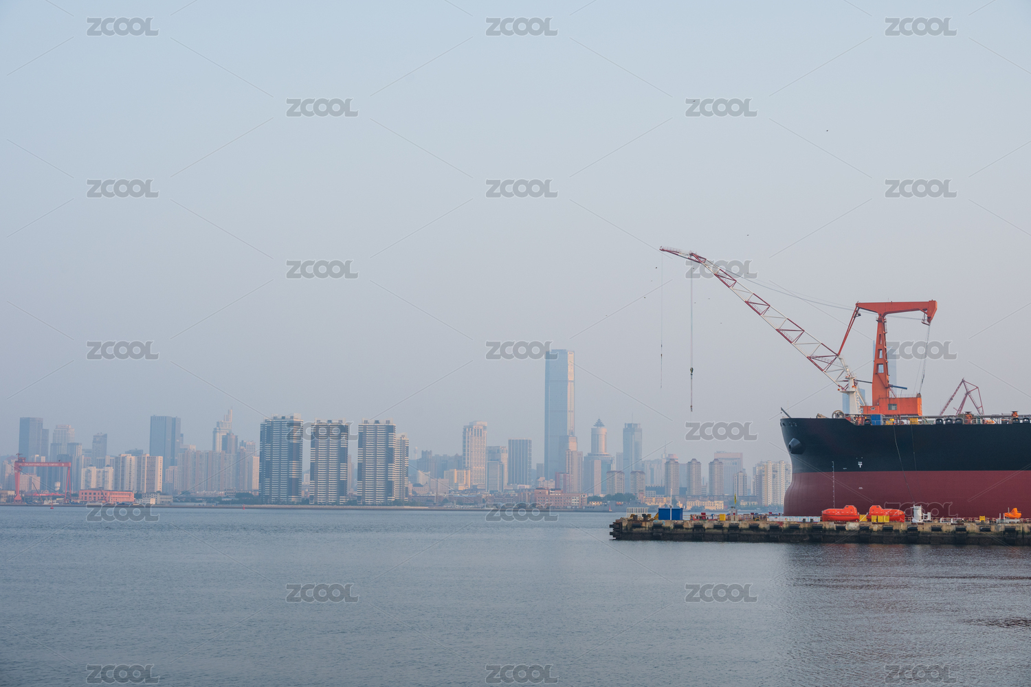 ??吭谏钲谑宣}田港口碼頭上巨大貨輪