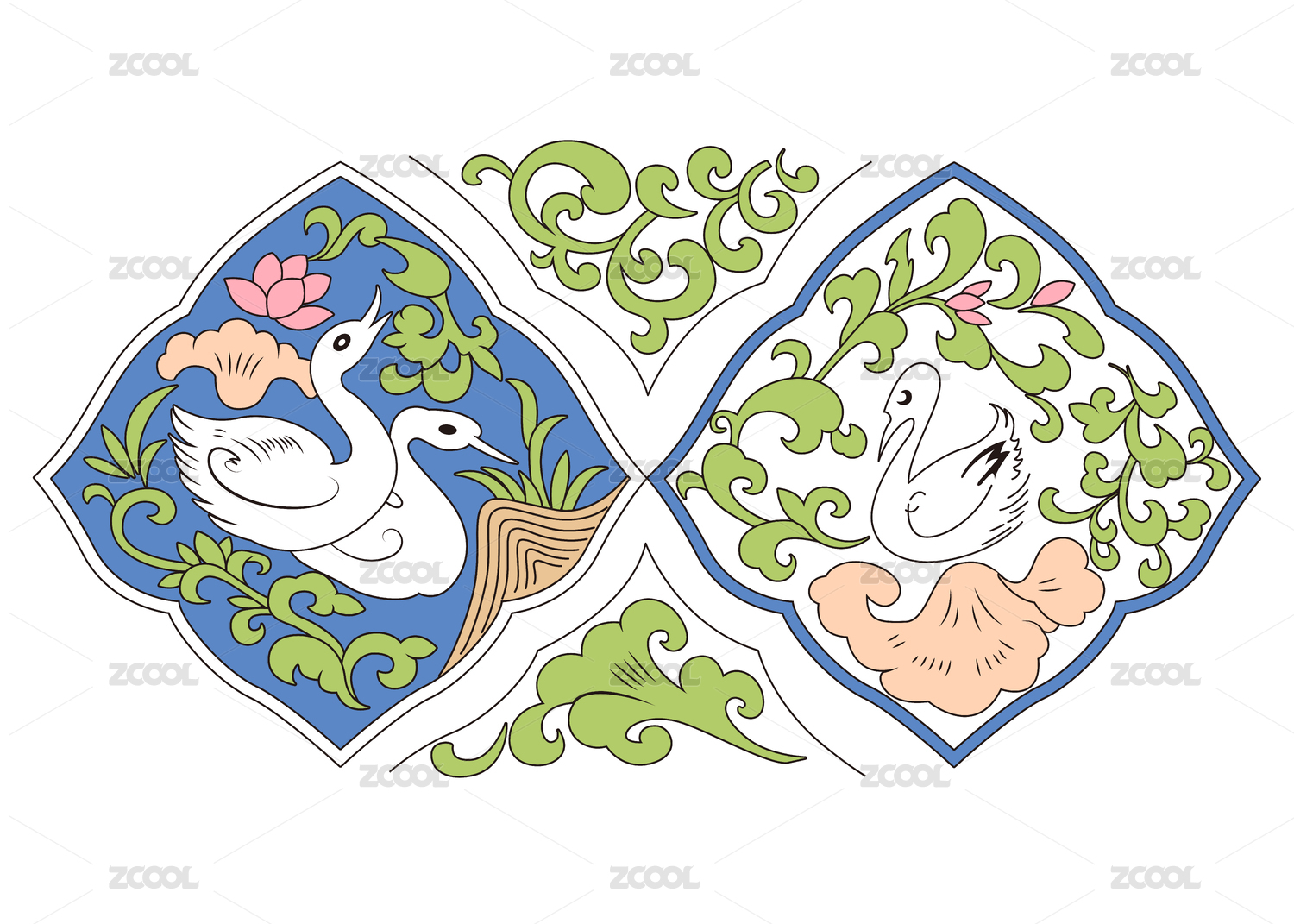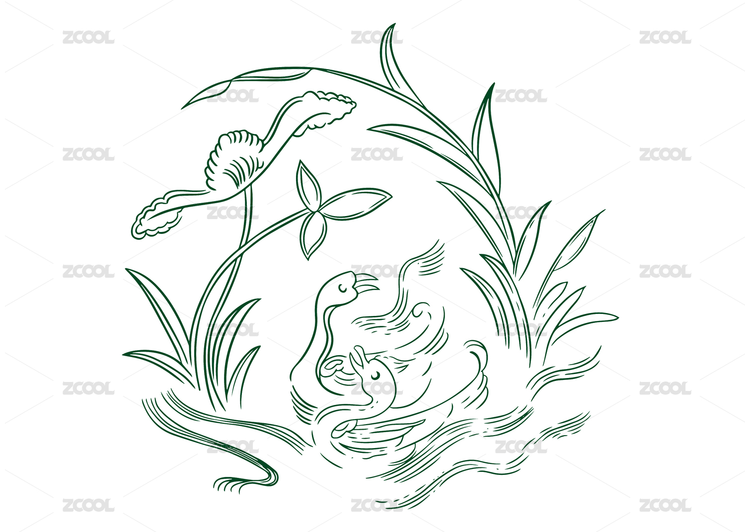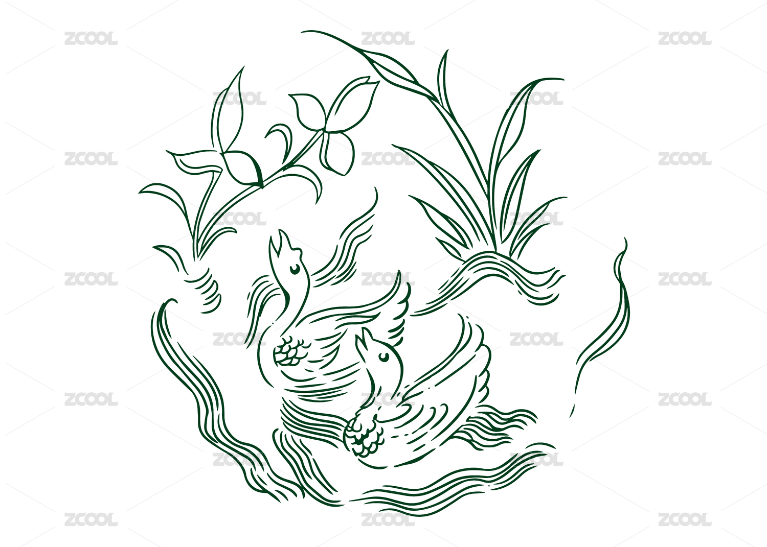 站酷紋樣-宋 蓮荷水禽紋