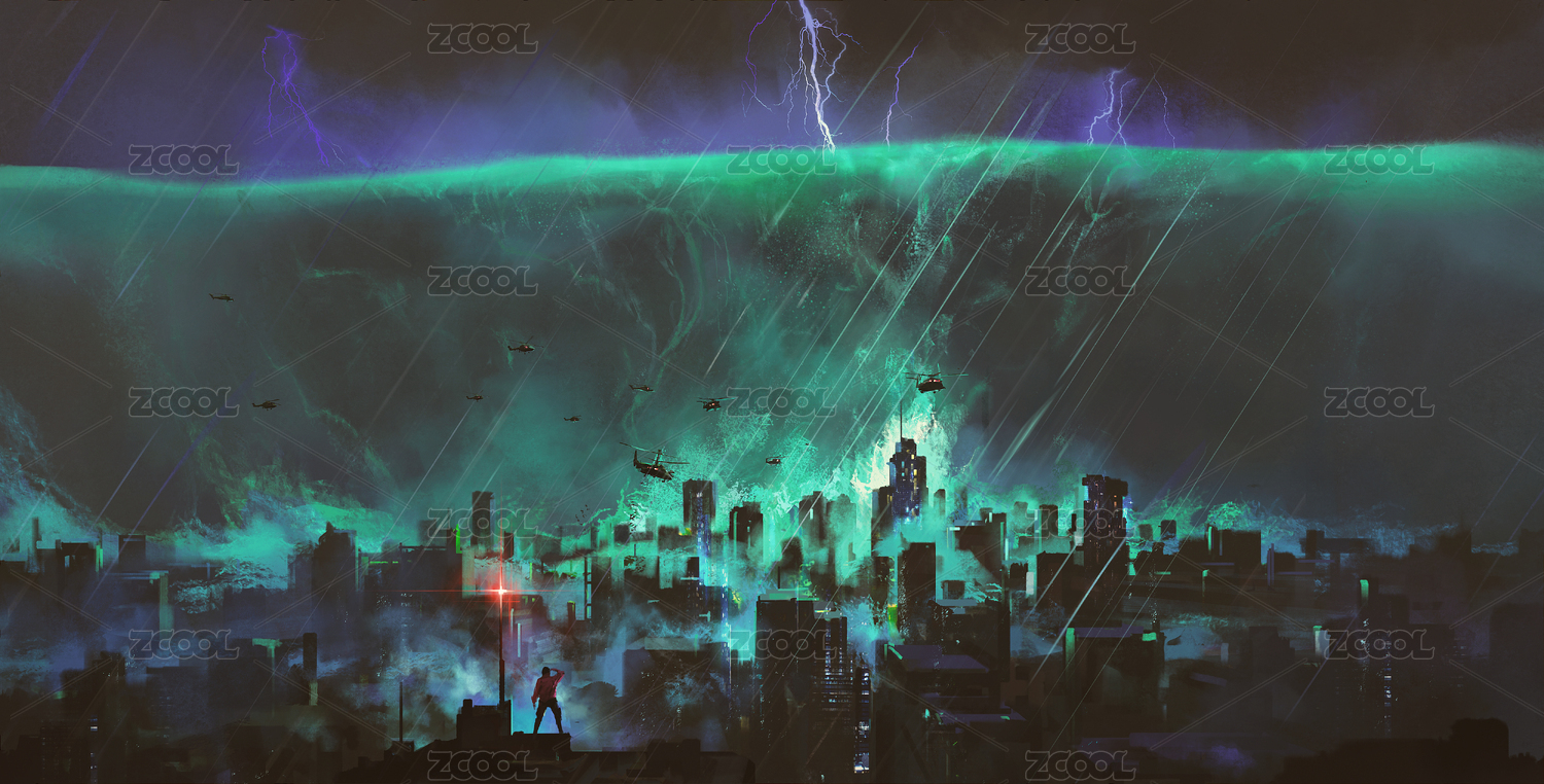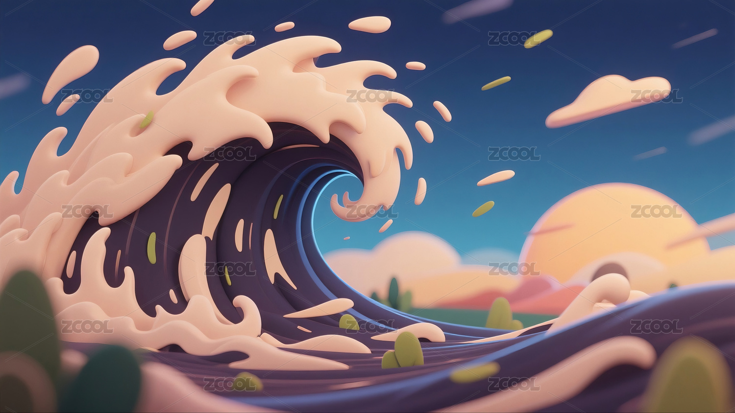臺(tái)風(fēng)引起海嘯的漫畫(huà)