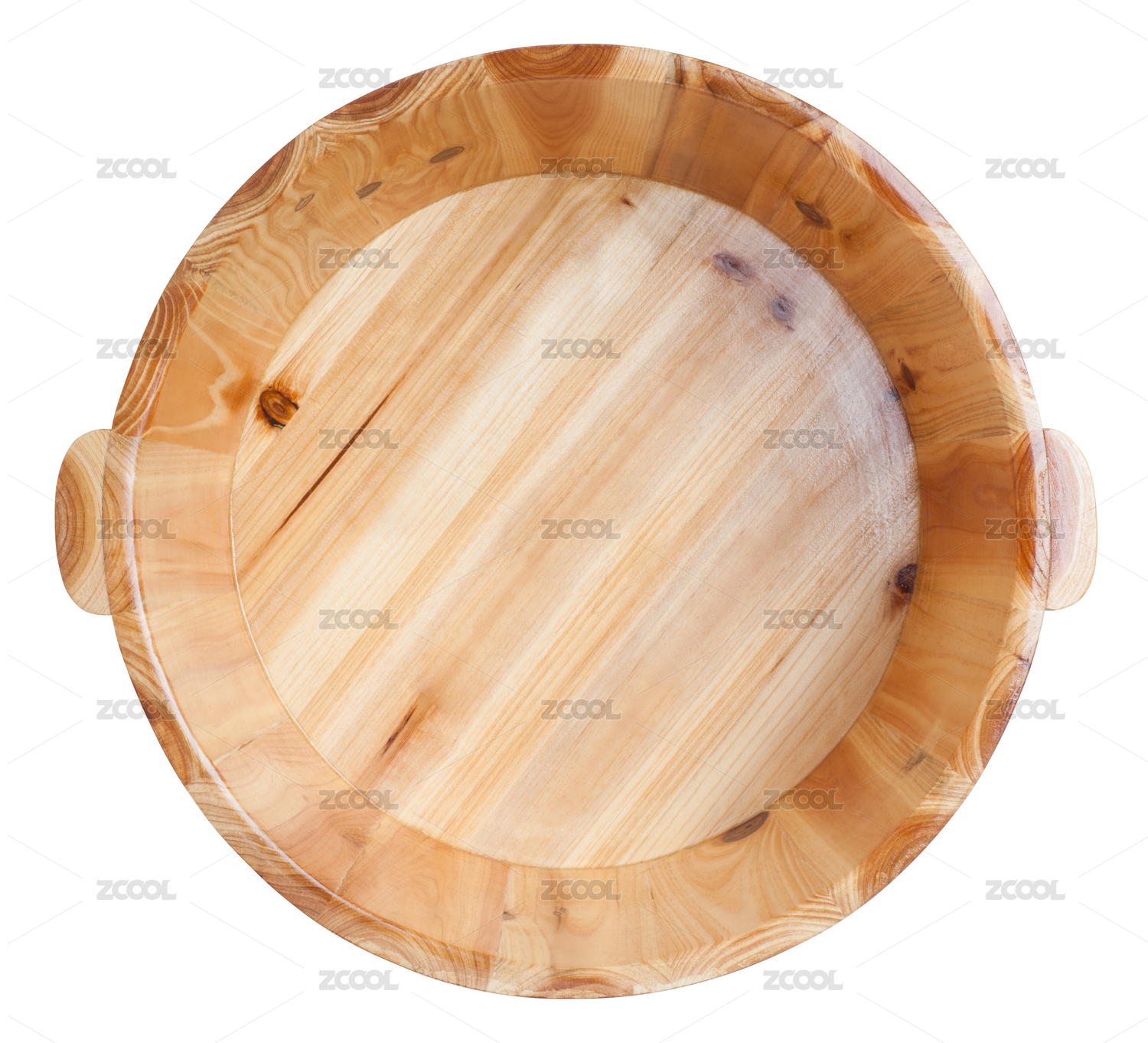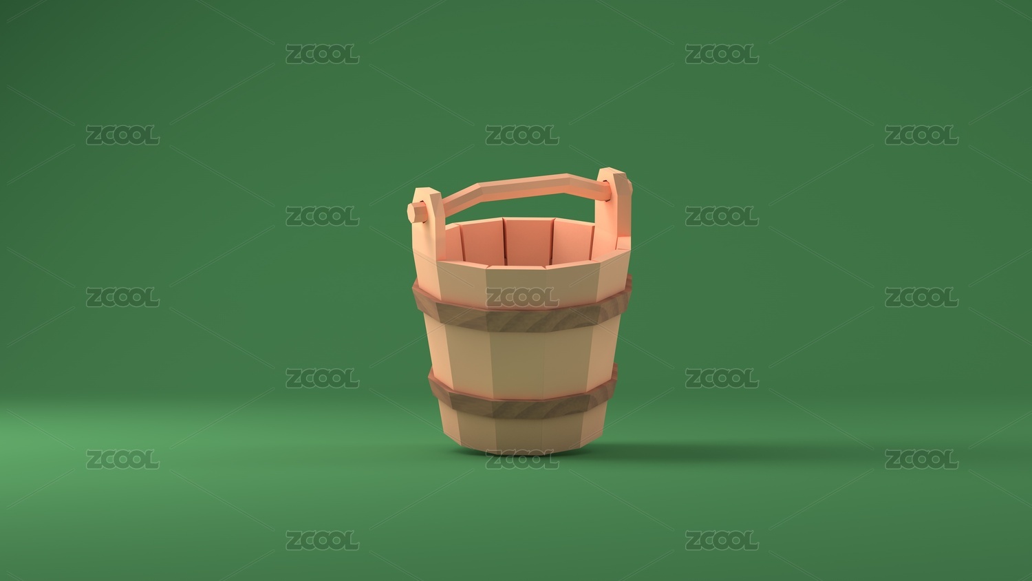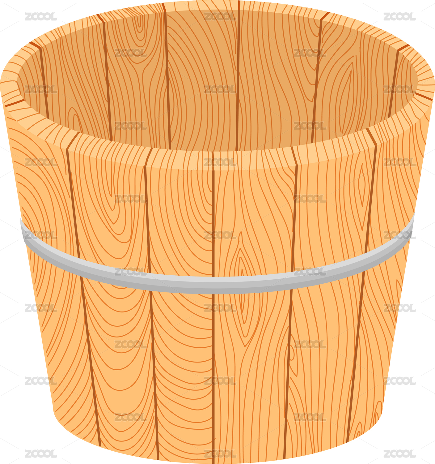 兩邊金屬固定的木紋木桶容器,白色背景,三維