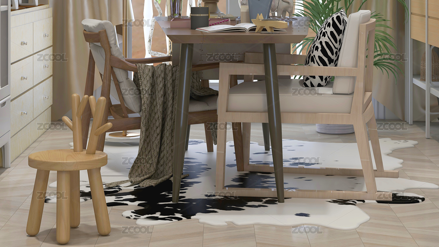 書(shū)房里的木質(zhì)家具小椅子書(shū)桌