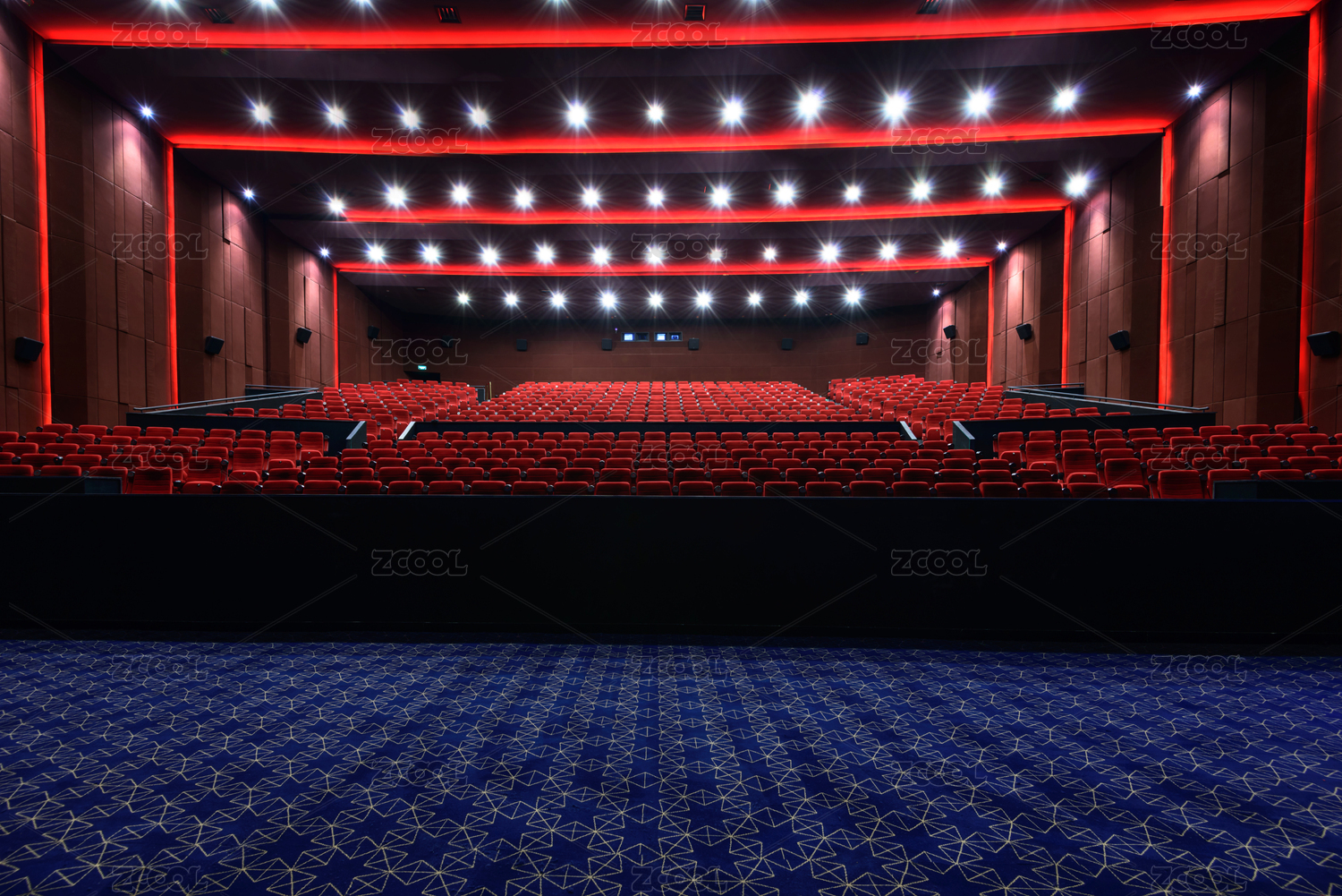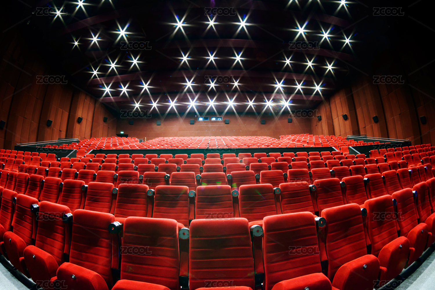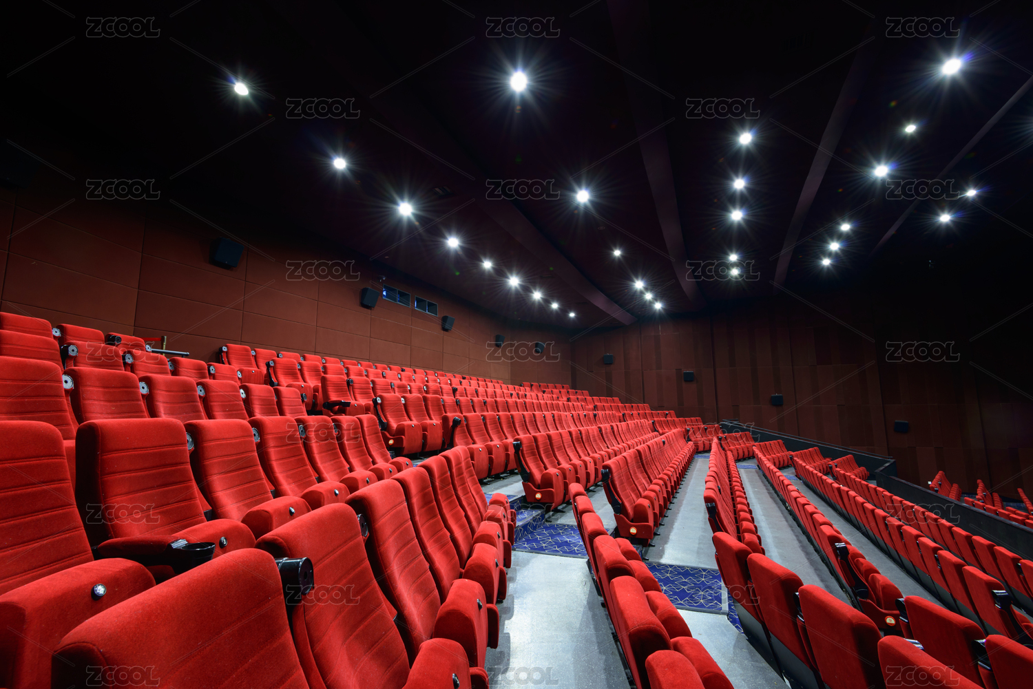 無(wú)人的大型的電影放映廳,紅色的椅子