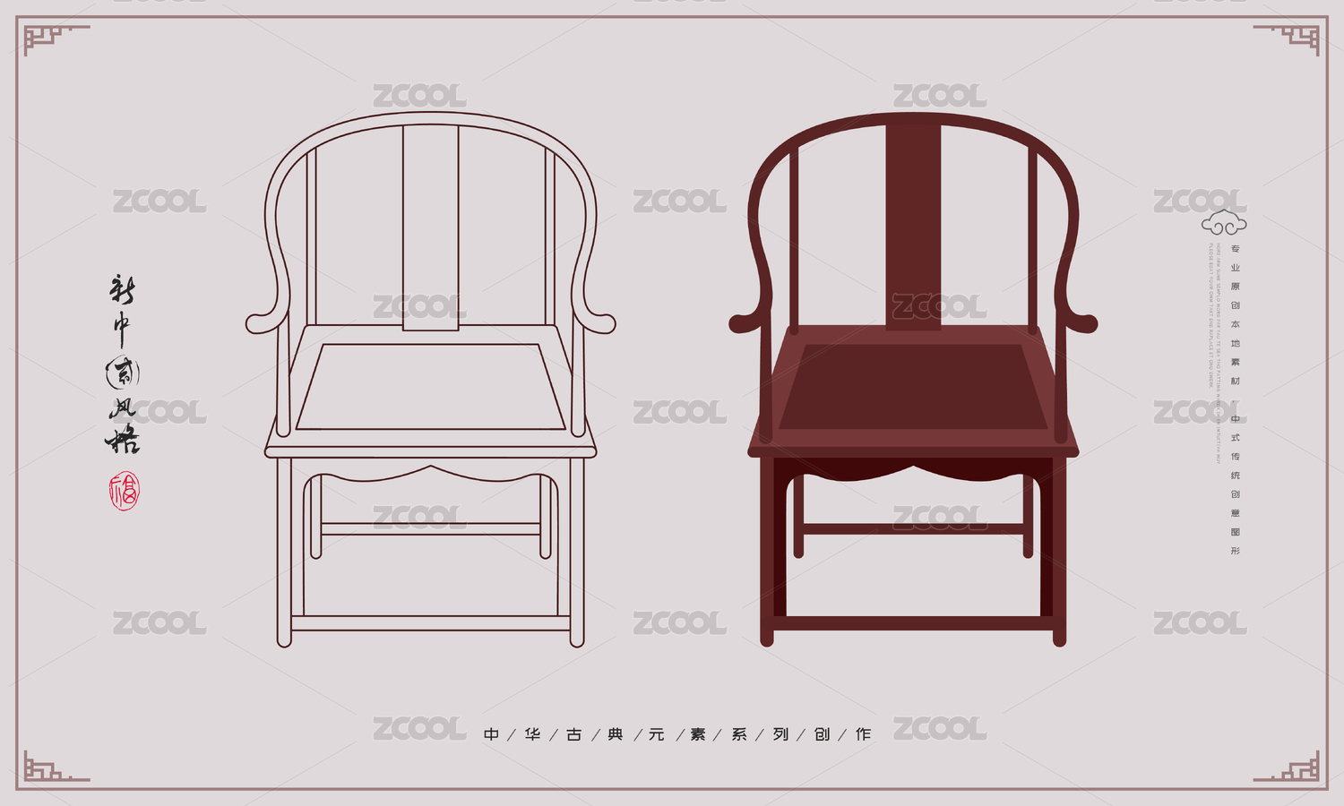 中華古典元素系列創(chuàng)作之矢量插畫(huà)明清家具椅子