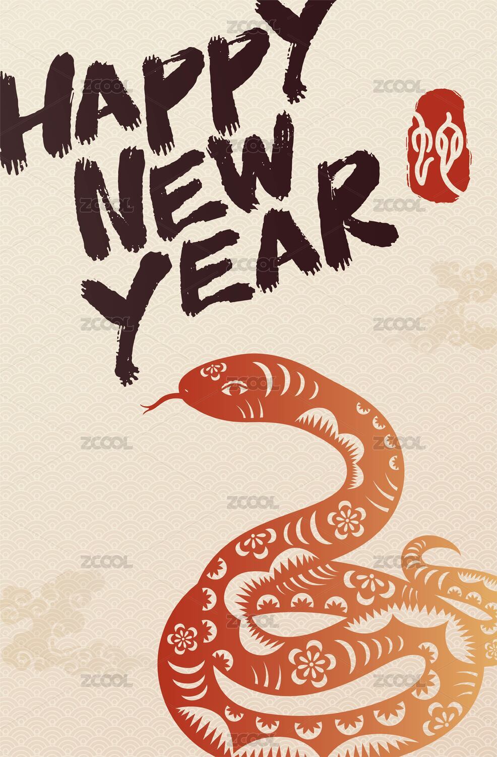 國(guó)潮十二生肖蛇傳統(tǒng)喜慶紋樣矢量插畫海報(bào)