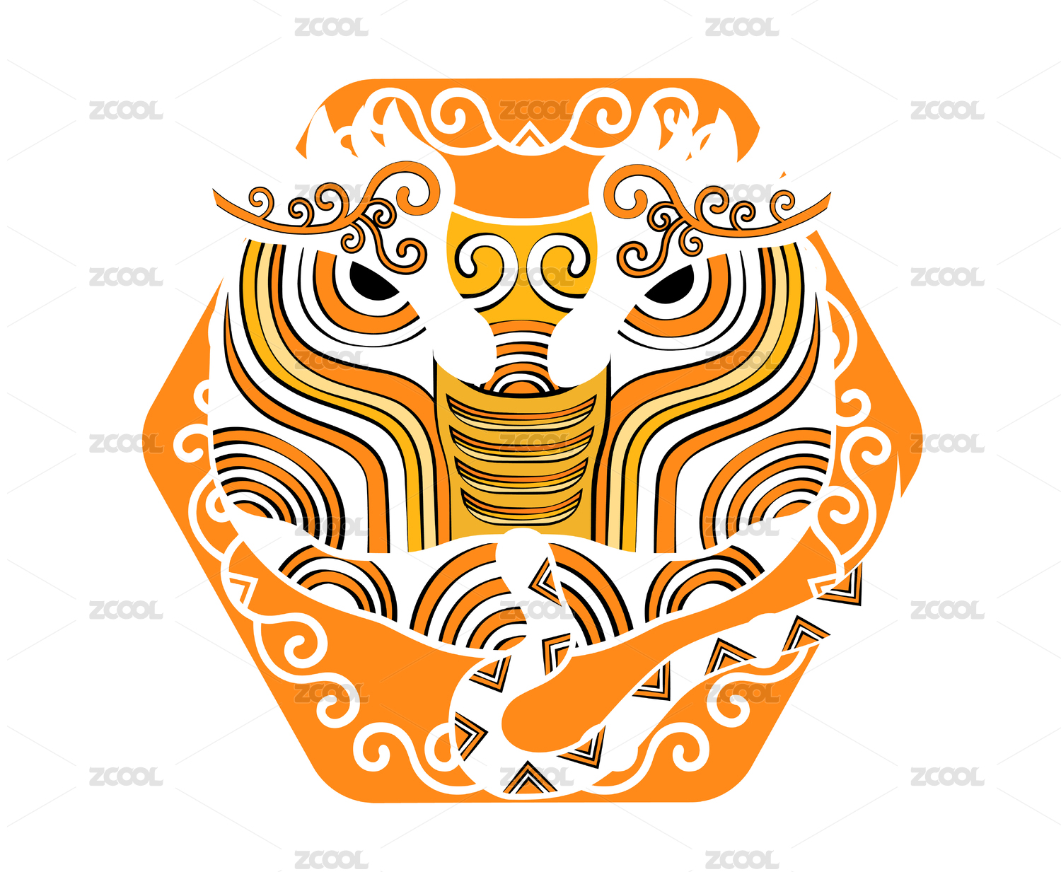 十二生肖簡(jiǎn)約國(guó)潮蛇頭潮流印花紋樣矢量插畫