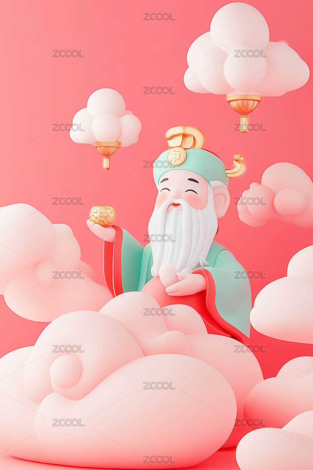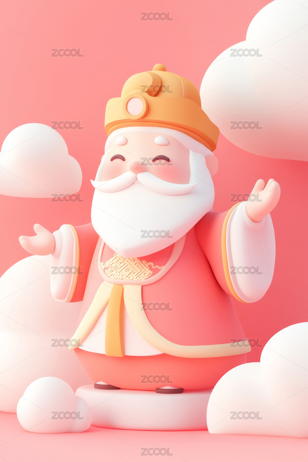 三維立體卡通財神爺形象,祥云,玩偶