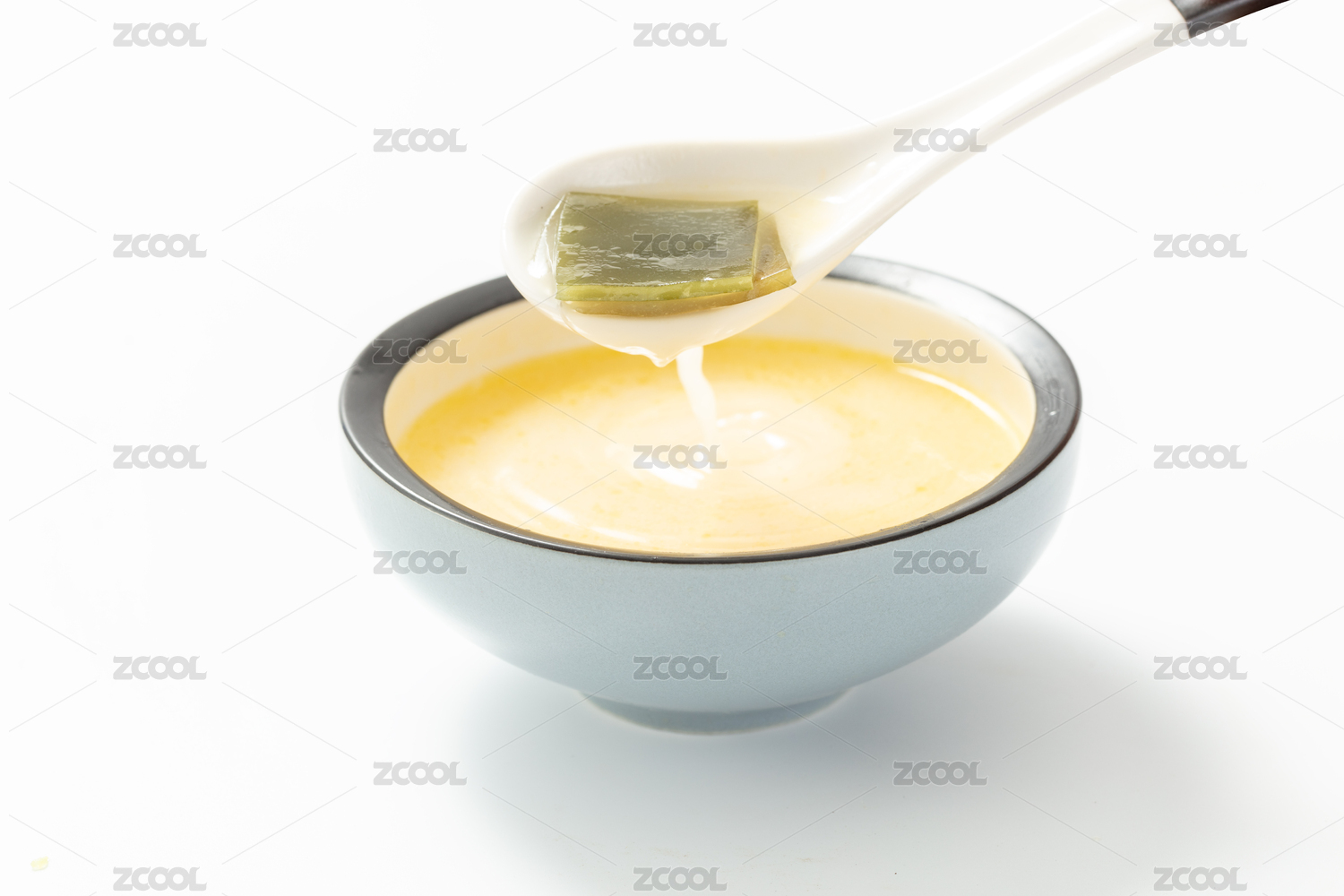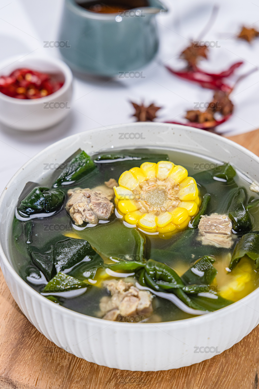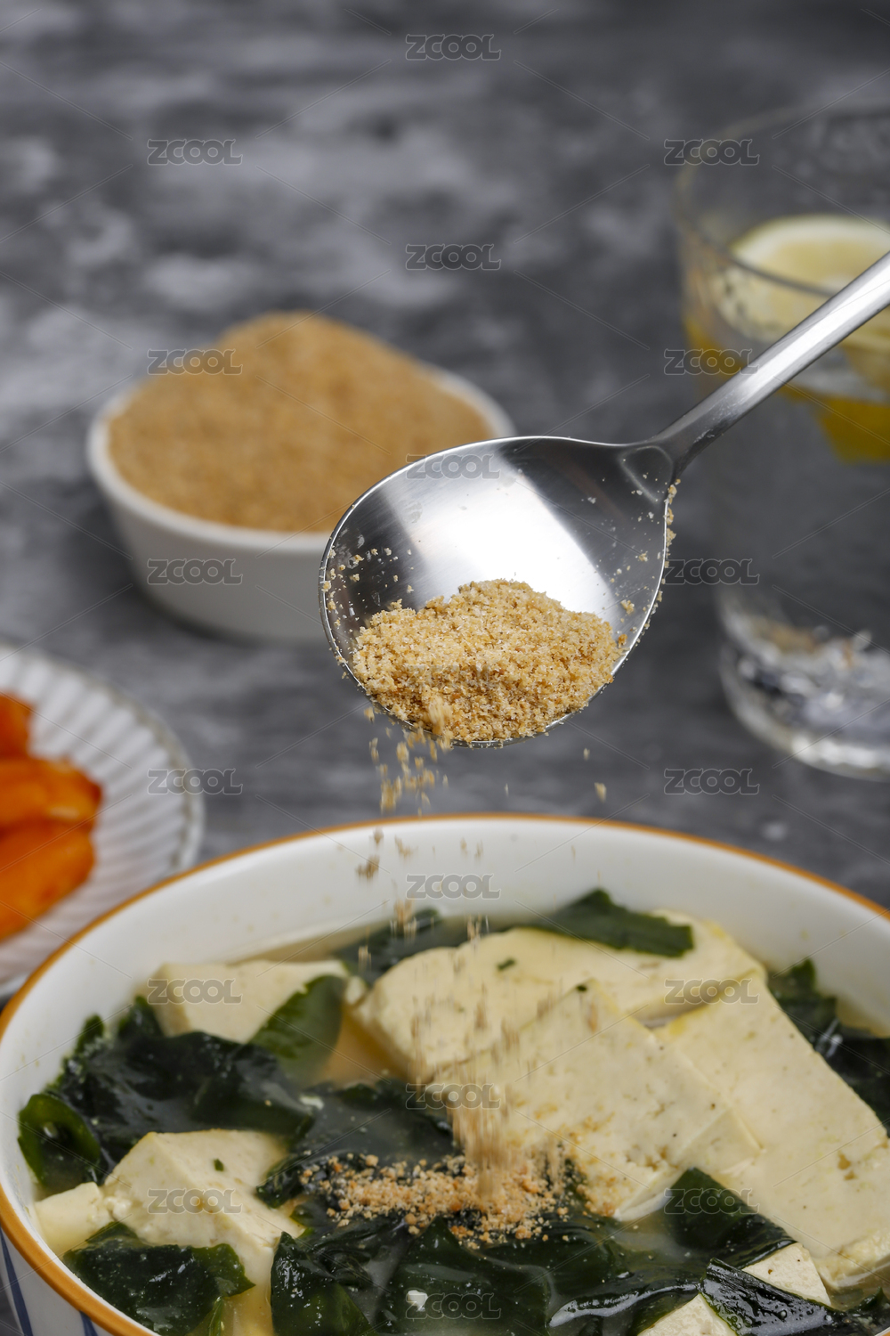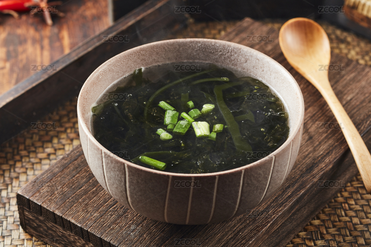 小碗上勺子里裝著的海帶湯
