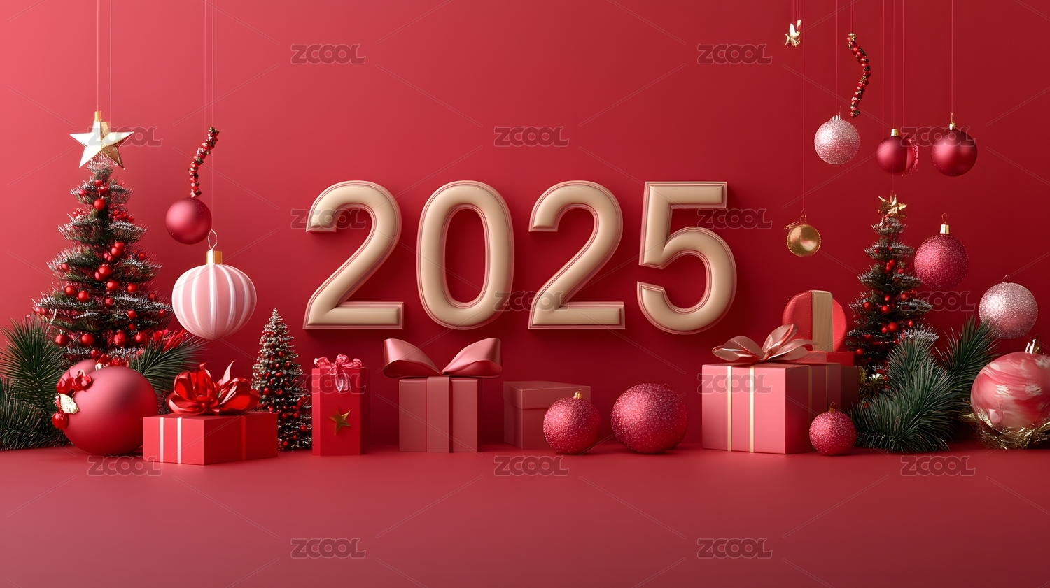 2025新年數(shù)字紅色背景