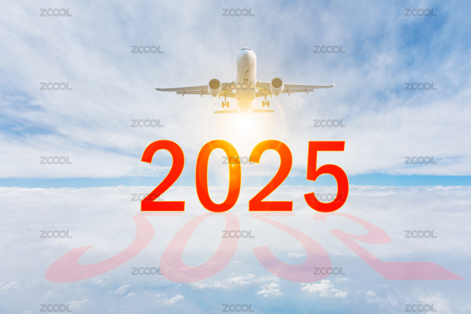 2025新年元旦跨年藍(lán)天白云飛機(jī)背景